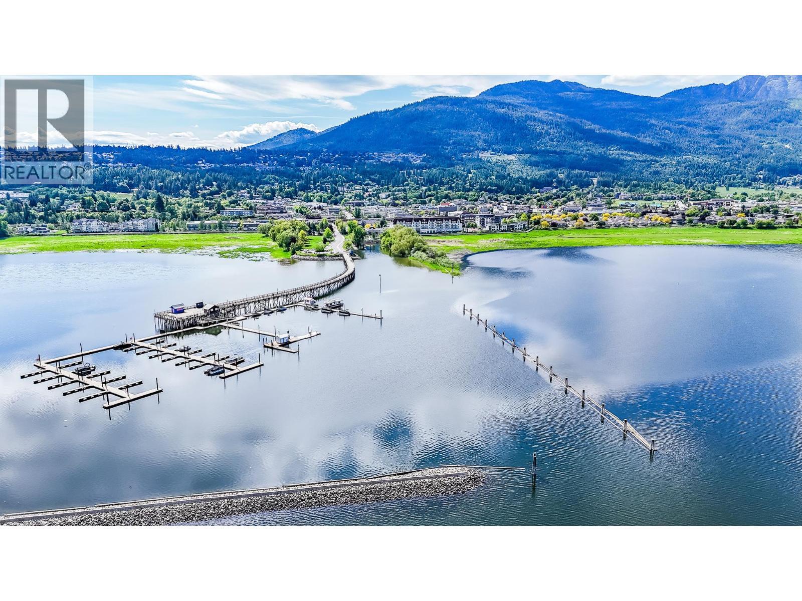 Visit REALTOR website for additional information. This luxurious 2,495 sq. ft. sub-penthouse on Harbourfront Drive offers stunning lake and mountain views with easy access to trails, the Salmon Arm Wharf, and downtown amenities. Featuring 9’ ceilings, refinished hardwood floors, LED lighting, and Hunter Douglas blinds. The open layout includes a spacious living room with a 62” fireplace, a gourmet kitchen with Westwood cabinetry, Caesarstone countertops, a large island, and stainless appliances. A second bedroom and private office/den with Murphy bed offers ample space for hosting guests. The primary suite boasts a walk-in closet and spa-like ensuite with a jetted tub and massage shower. A large, covered deck, two parking spaces, an elevator, and a storage locker complete this wheelchair-accessible home in Salmon Arm’s premier waterfront location. (id:6769)