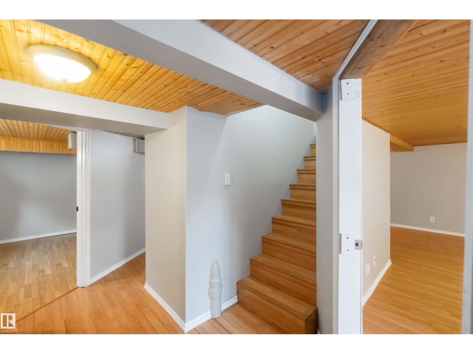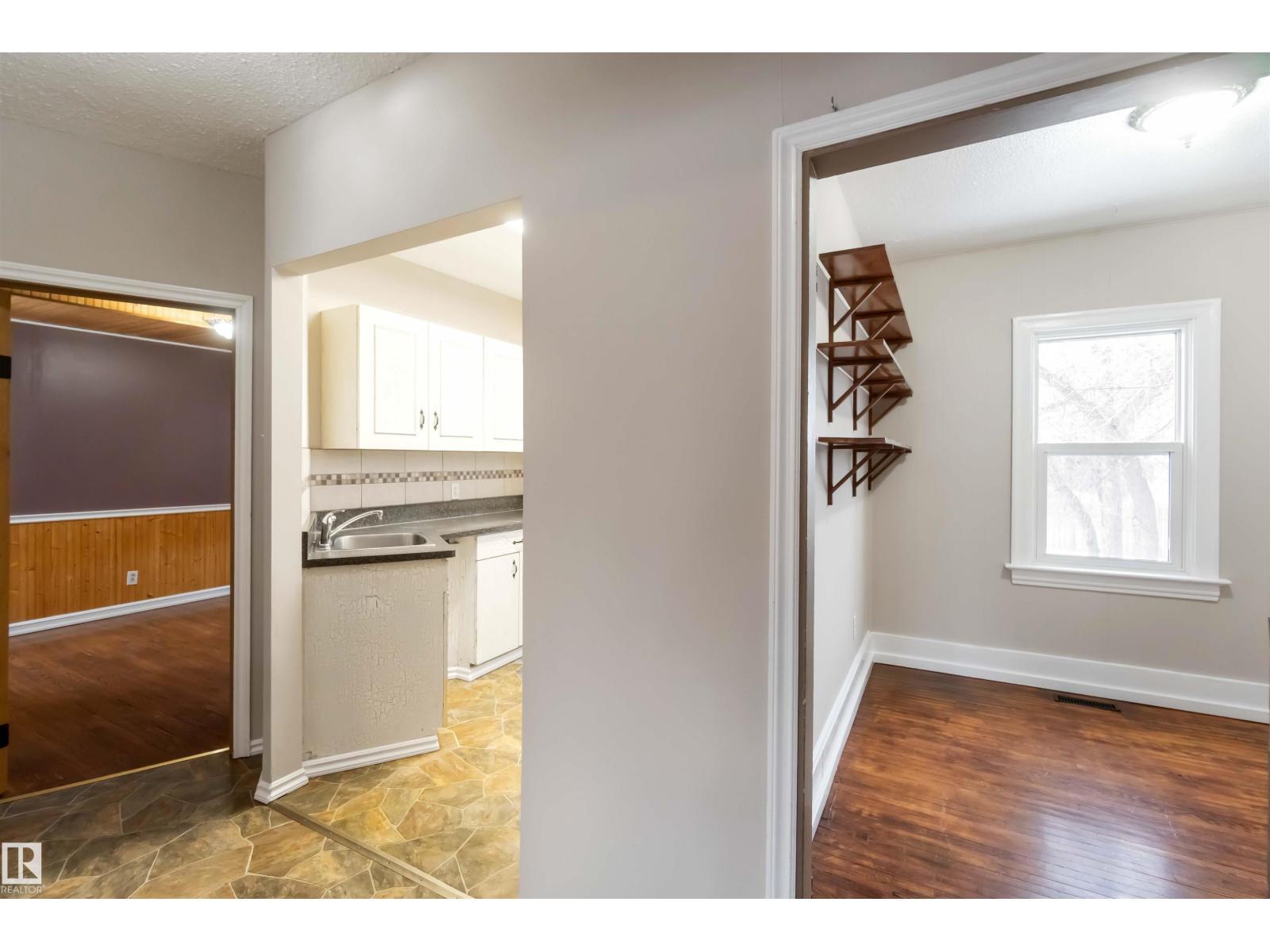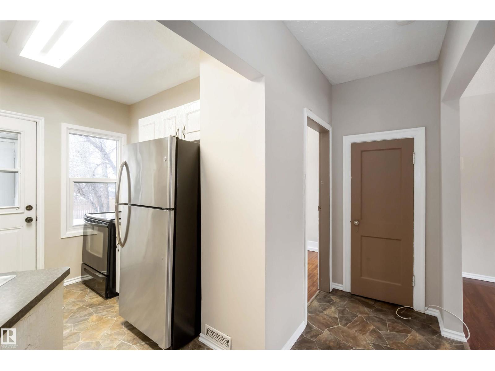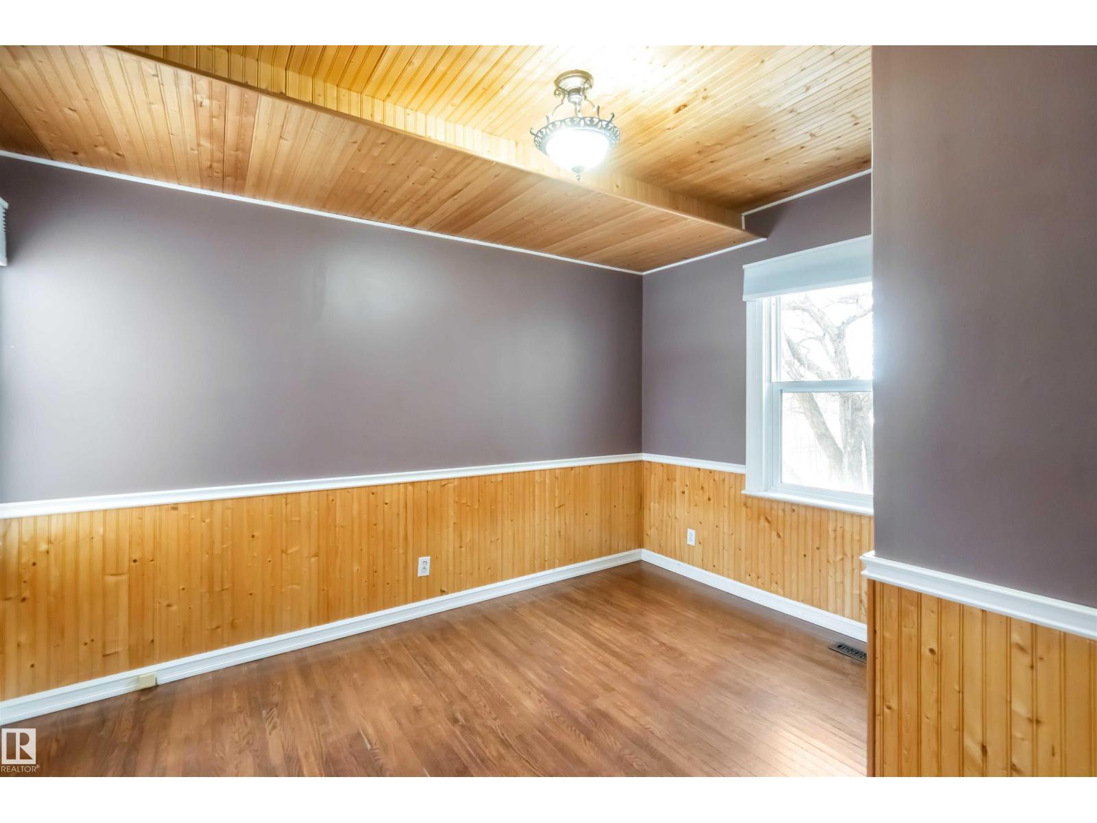 Start your journey & invest in this cute bungalow in the Town ofGibbons. Freshly painted throughout & newer vinyl windows & hardwood floors plus electrical was upgraded in 2025. Sitting on a 50'x150' lot there is ample room for a large garage in the back yard or room for RV storage. Front entrance is through an enclosed front porch - great for boot/shoe storage. Primary bedroom on the main level, den, 4 pc bathroom, galley kitchen with access to a back enclosed porch looking over the yard. The basement is finished with an additional bedroom, flex room, laundry/utility area & family room. Front driveway leading to the fenced back yard. (id:6769)