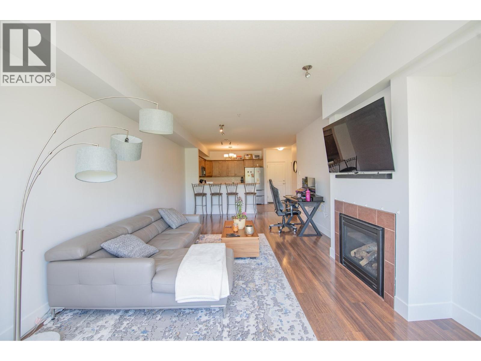 Immediate possession available! Welcome home to Winterra at The Lakes. Spacious 1 bedroom, 1 bathroom condo with open concept living, dining and kitchen areas, cozy gas fireplace, and In-suite laundry on the quiet side of the building facing South East. The kitchen is well equipped with SS appliances, a breakfast bar and plenty of storage and counter space. Private covered patio faces South-East for lovely morning sunshine as well as a hookup for a gas bbq for outdoor cooking. Great storage with a locker on the same floor as unit and bike storage in the underground parking. One secure parking spot. The Clubhouse has a kitchen, fitness room and a guest suite. Great location to lakes, walking/hiking trails, Kelowna airport, UBCO campus, restaurants and so much more! Perfect investment property or starter home. Some furniture can be included! Call today to book your showing. (id:6769)