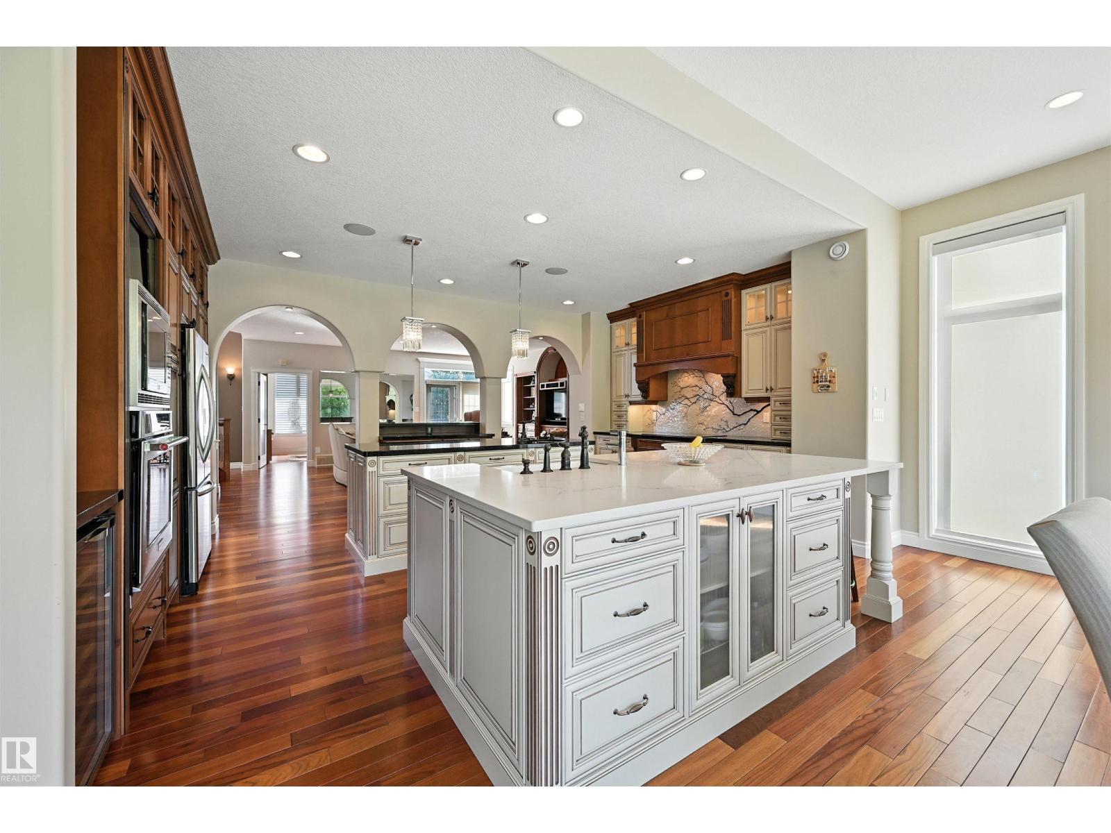 AMAZING location w/nature at your door stop in prestigious Magrath. INCREDILBLE VALUE w/$500,000 expansion/redesign by Ackard Renovations (2017) provides over 5100 sf of luxury living space- 4 bedrms & 4.5 bathrms. Renovated main level offers heated porcelain tiled floors, a family rm, craft rm, wet bar & media rm (or 5th bedrm) w/full bath & laundry area. 2nd level is the MAIN living space (similar to BC) featuring a Great rm, den & library/billiard rm. Chef’s kitchen w/2 islands, dining area & the main living area, filled w/natural light & spectacular ravine views. Breathtaking $20K Onyx book matched feature FP. Outdoor entertaining is next level- 7500 sf private west facing yard. Primary bedrm is perfect- a huge walk in closet w/built ins galore, it is the shoppers dream! Lavish spa like ensuite. 2nd laundry area. Upper level w/3 more bedrms + 2F baths incl a 2nd primary suite. Balconies/decks galore w/stunning panoramic City views. TRIPLE tandem garage. Steps to K-9, park/ponds & nearby cafes/shops (id:6769)