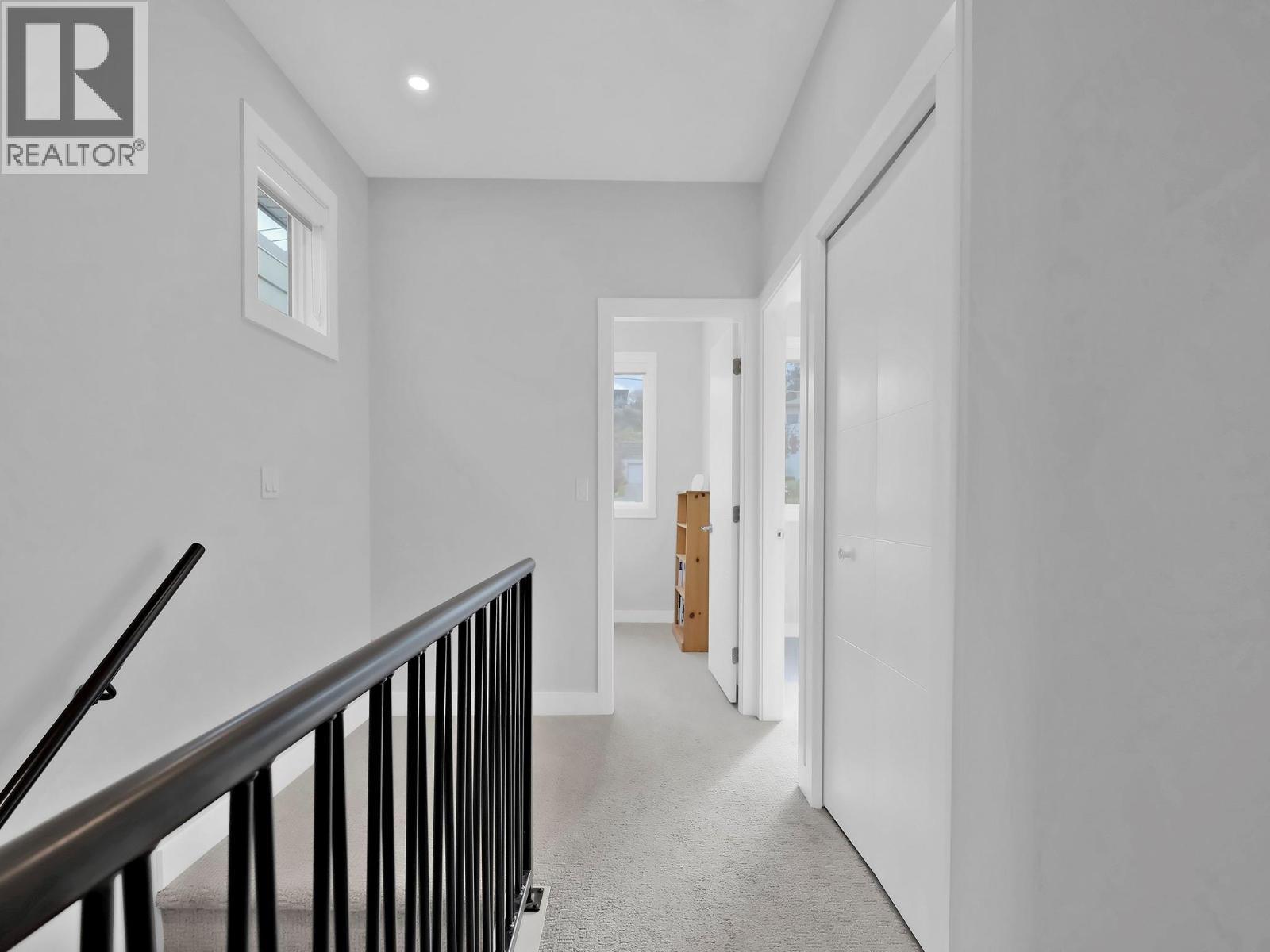 Trendy Corner Townhome, Steps from Downtown Penticton - If location matters to you, this one delivers. This bright, well-maintained 3-bedroom, 3-bathroom corner townhome sits in a quiet, tidy development within walking distance of Okanagan Lake, the KVR Trail, craft breweries, the farmers market, and downtown's best shops and restaurants. Urban convenience without the noise. The main level features a sun-filled, open-concept living space that works equally well for relaxing or entertaining. The kitchen stands out with a gas stove, stylish cabinetry, and a sit-up breakfast bar perfect for casual meals or hosting friends. A 2-piece powder room completes the level. Upstairs, the primary bedroom offers a walk-in closet, 3-piece ensuite, and a peek-a-boo lake view. Two additional bedrooms, a full bathroom, and in-suite laundry round out the upper floor with comfort and practicality in mind. The lower level rec room opens directly to a fully fenced private patio with a gas BBQ hookup - a great spot for long Okanagan summer evenings. Pet-friendly, no age restrictions, low strata fees of just $210/month, and remaining home warranty still in place. A solid buy for first-timers, downsizers, or investors. This kind of package doesn't come up often. Total sq.ft. calculations are based on the exterior dimensions of the building at each floor level & include all interior walls & must be verified by the buyer if deemed important. (id:6769)