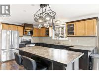 Bright and spacious open-concept bi-level home in a desirable family neighbourhood! The main living area is filled with natural light from large windows and skylights, with patio doors leading to the deck for seamless indoor-outdoor living. A standalone stone wood-burning fireplace adds warmth and character, while laminate flooring flows throughout the main space. The kitchen is ideal for gathering, featuring two-tone cabinetry, a large centre island, stainless steel appliances, pendant lighting, under-cabinet lighting, and generous counter space. The home offers a spacious primary suite complete with a full ensuite, corner jetted tub, and separate tiled shower. The updated (non-legal) 1-bedroom suite includes a full kitchen, dining and living area, heated bathroom floor, abundant natural light, and a separate entrance, ideal for extended family or mortgage helper potential. Extensive updates, including a newer heating system, natural gas, on-demand hot water, new air conditioning, a new 200-amp electrical panel, renovated basement with R-28 ceiling insulation, spray-foamed garage walls and ceiling, new soffits and fascia, and a new entrance. The deck has also been recently replaced and includes a hot tub for year-round enjoyment. The fully fenced corner lot features a cherry tree, garden shed, single garage, and RV parking. Stucco exterior repainted. Close to walking trails, golf, and schools, and just 30 minutes to Big White. (id:6769)