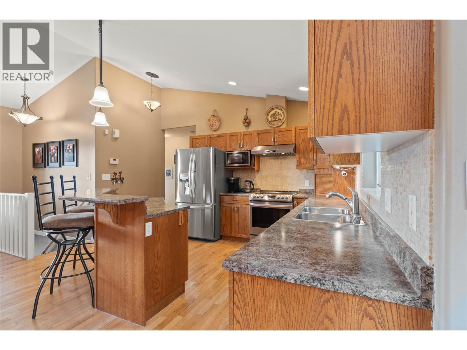 Spacious and family-friendly home within walking distance to Dufferin School and the upcoming rec centre! This well-designed property features a welcoming foyer and hardwood floors leading to the main floor. Classy vaulted ceilings, and an open-concept main living area with a cozy gas fireplace in the living room that opens to the dining room with buffet alcove and flows to a large BBQ patio. Handy sun shades for hot summer days and a beautifully terraced and x-scaped professionally landscaped yard designed for low maintenance outdoor enjoyment and water economy. The kitchen offers abundant cabinetry, all appliances including an induction range, and a large island with bar seating perfect for entertaining. Upstairs you'll find two generous bedrooms, including an oversized primary bedroom expanded for extra comfort with a deluxe 5-piece spa-inspired ensuite. A third bedroom could easily be recreated with the addition of one wall. The lower level offers excellent flexibility with a 2-bedroom in-law suite complete with stove and mini-fridge as a mortgage helper, or use the space as a large rec room with wet bar for a larger family. A 4-piece bath and plumbing for a second laundry add convenience. Additional highlights include a laundry room with sink, washer and dryer included. The private terraced yard has a handy powered work shed and wiring for a future hot tub. Ideal for growing families seeking space and a potential mortgage helper. (id:6769)