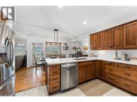 Tucked into the desirable Smith Creek neighbourhood, this well-maintained 4 bed, 3 bath residence offers move-in ready comfort and flexible living surrounded by nature. Located steps from Wild Horse Park with walking trails and disc golf, and minutes to Shannon Lake, golf, shopping, and amenities. The main level welcomes you with high ceilings, hardwood floors, and windows framing surrounding mountain views. The open-concept living and dining areas are anchored by a floor-to-ceiling porcelain tile fireplace, creating a warm space for gathering. From the dining area, step out to a covered patio, an ideal spot to enjoy southwest exposure and mountain views. The kitchen blends function and style with maple cabinetry, quartz countertops, tile backsplash, peninsula seating for four, and a corner pantry. A coffee bar and direct access to the covered upper deck make it perfect for entertaining or morning coffee outdoors. The primary suite features a walk-in closet with built-ins and a 4-piece ensuite with double vanity and tiled walk-in shower. A second bedroom and full bath complete the main level. Downstairs offers two additional bedrooms plus a versatile family room with kitchenette and separate entrance, ideal for guests or extended family. Outside, enjoy a fully fenced yard with mature cedar hedging, landscaped gardens, a storage shed, and multiple outdoor living areas including the upper deck and lower patio. A double garage with heating, cooling, and 225-amp welding service completes this Smith Creek home. (id:6769)
