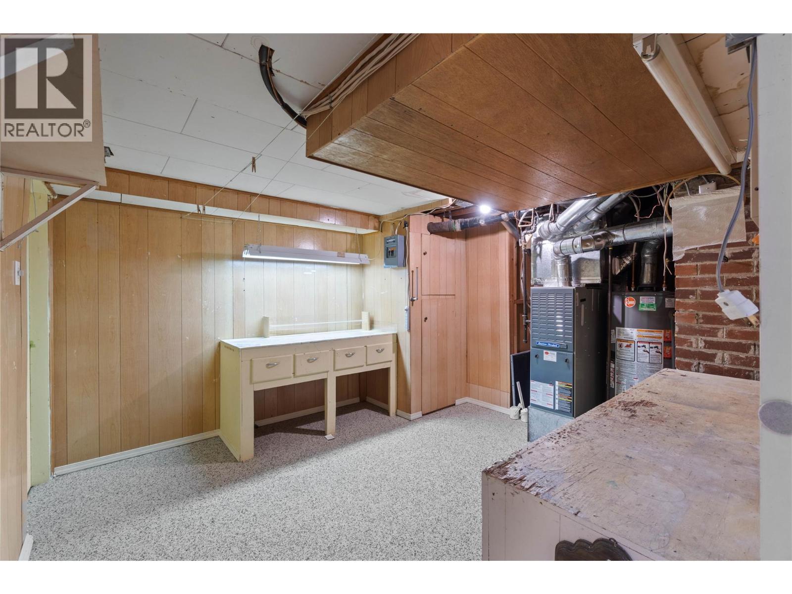 This cute and well-maintained home offers comfort, functionality, and quick possession available. Inside, you'll find easy-care tile flooring, vinyl windows, and a beautifully updated 4-piece bathroom. The main floor features two bedrooms, including a spacious king-sized primary bedroom that has been extended with an addition and skylight for wonderful natural light. The layout wraps to the hallway where you'll find a second closet and convenient stacking laundry. The bright dining area features another skylight and flows nicely into the kitchen, which comes fully equipped with a gas range, fridge, dishwasher, and plenty of cabinets and counter space. A built-in breakfast nook adds charm and functionality, while the back door leads to the covered deck and private yard. The fully finished basement expands your living space with a recreation room, third bedroom, and bright 3-piece bathroom. There is also a utility workshop area with benches and a cold storage room with shelving for extra storage. Step outside to enjoy the private fenced yard, complete with patios and fruit trees—perfect for relaxing or entertaining. Additional features include: • Central air conditioning • New hot water tank * Large double garage • RV parking from the back lane • Extra workshop space A wonderful opportunity to own a comfortable, move-in ready home in a great setting close to all amenities & downtown. (id:6769)