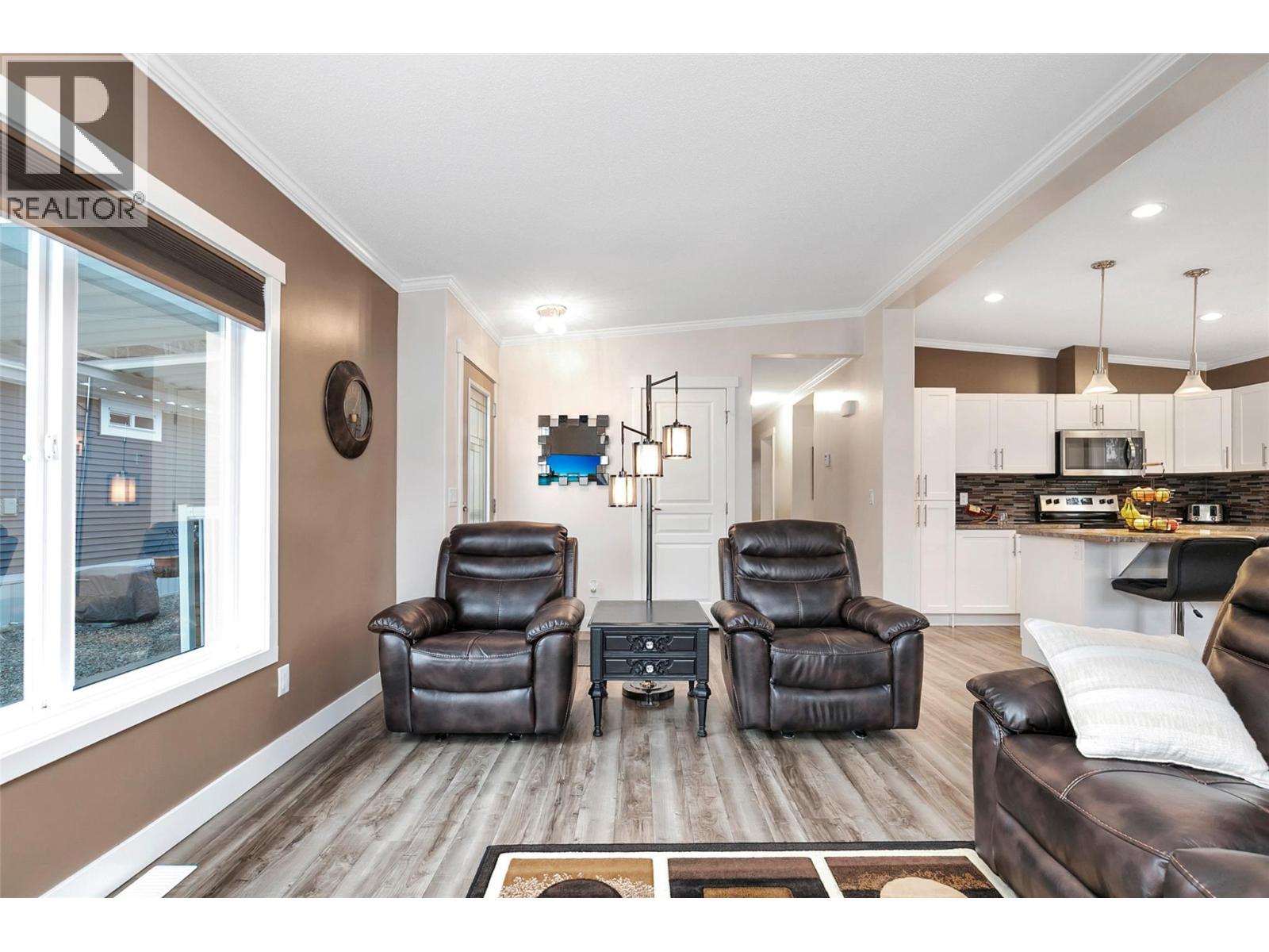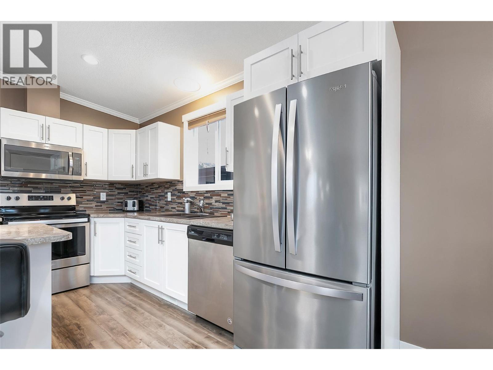 Welcome to this beautifully maintained home offering comfort, privacy, and an unbeatable location. Ideally situated with easy access to nearby walking paths and backing onto a tranquil pathway and creek, this home provides a peaceful outdoor setting with added privacy. Inside, the bright and inviting living area showcases vaulted ceilings and popped out windows that enhance natural light and create an airy feel while the fireplace adds warmth and charm. Daytime privacy film on the kitchen and living room windows offers added convenience without sacrificing brightness. The low-maintenance yard features water-smart landscaping, perennials, and evergreen shrubs, creating a lovely space to enjoy year-round. A composite deck offers a comfortable outdoor sitting area, with an adjoining patio section that provides additional space ideal for entertaining. A small storage shed adds convenient space for tools and seasonal items. Practical features include two parking spaces with a small carport for covered parking. Located within walking distance (or a short drive) to a convenient shopping plaza offering a drugstore, theatre, restaurants, gas station, and medical services. Just a short drive to DT Kelowna and the area’s beautiful beaches like Hot Sands Beach, this home combines peaceful surroundings with everyday convenience. An excellent opportunity for those seeking affordable, low maintenance living in a well connected and desirable community. (id:6769)