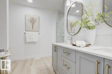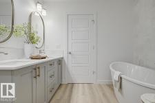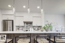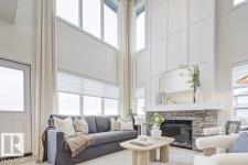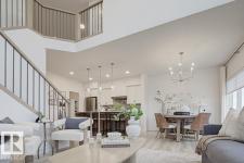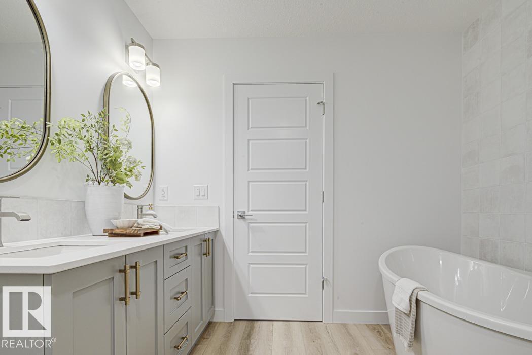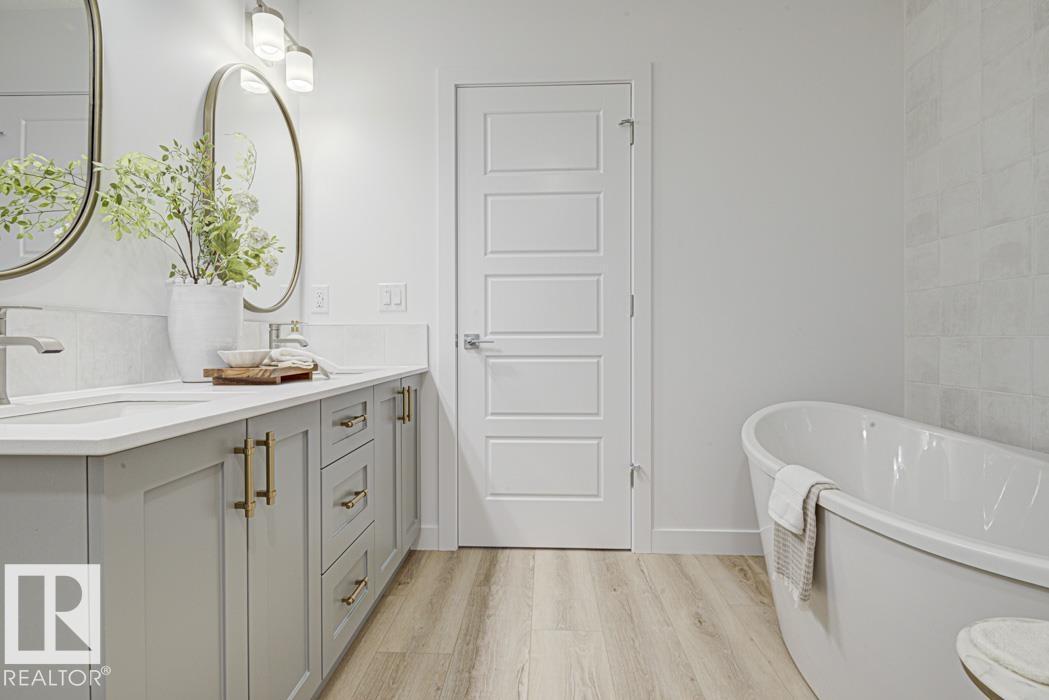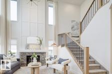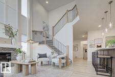 Built by Sterling Homes, this front-attached home in Forest Ridge blends striking design with everyday comfort. Triple pane windows and 9’ ceilings brighten the main floor, where a welcoming foyer leads to a flex room and half bath. The mudroom connects to a walk-through spice kitchen, offering added prep space beside the main kitchen with quartz countertops, upgraded cabinetry, a custom hood fan, a Silgranit sink, and a large island for hosting. The great room features a dramatic 17-ft fireplace wall, oversized windows, and a garden door to the backyard. Upstairs, the primary suite offers walk-in closets and a 5-piece ensuite with a freestanding tub, double sinks, and a shower. A bright bonus room, two bedrooms, a full bath, and an upper laundry complete the level. Finished with luxury vinyl plank flooring, upgraded railings, side entrance, double attached garage, and basement rough-ins. (id:6769)