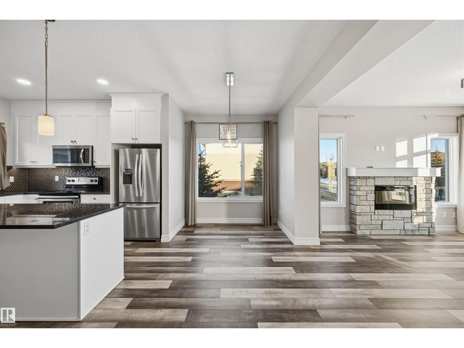 Bright, modern & spacious END UNIT 3 bed/2.5 bath townhouse w/ double attached garage in the desirable Walker neighborhood. 1600 sf total living space. Perfect for 1st time home owners or investors! Main floor features 9' ceilings, vinyl plank floors & a roomy living rm filled with natural light. Kitchen offers a functional layout, stainless steel appliances, quartz countertops, tons of counter space, walk-in pantry, eating bar, & built in desk. Upper level also has 9' ceilings & large primary bedrm w/ 3pc ensuite & walk in closet. Two other well sized bedrms, 4 pc main bath & laundry complete this level. Ground floor flex room w/ large window is perfect for an office, play rm, exercise area, or extra storage space! Energy-efficient mechanical including HRV & tankless hot water for a lower utility bill. This well maintained complex offers visitor parking and nearby walking trails & lake. Conveniently close to shopping, schools & public transit. Quick access to commuter routes incl Henday! (id:6769)