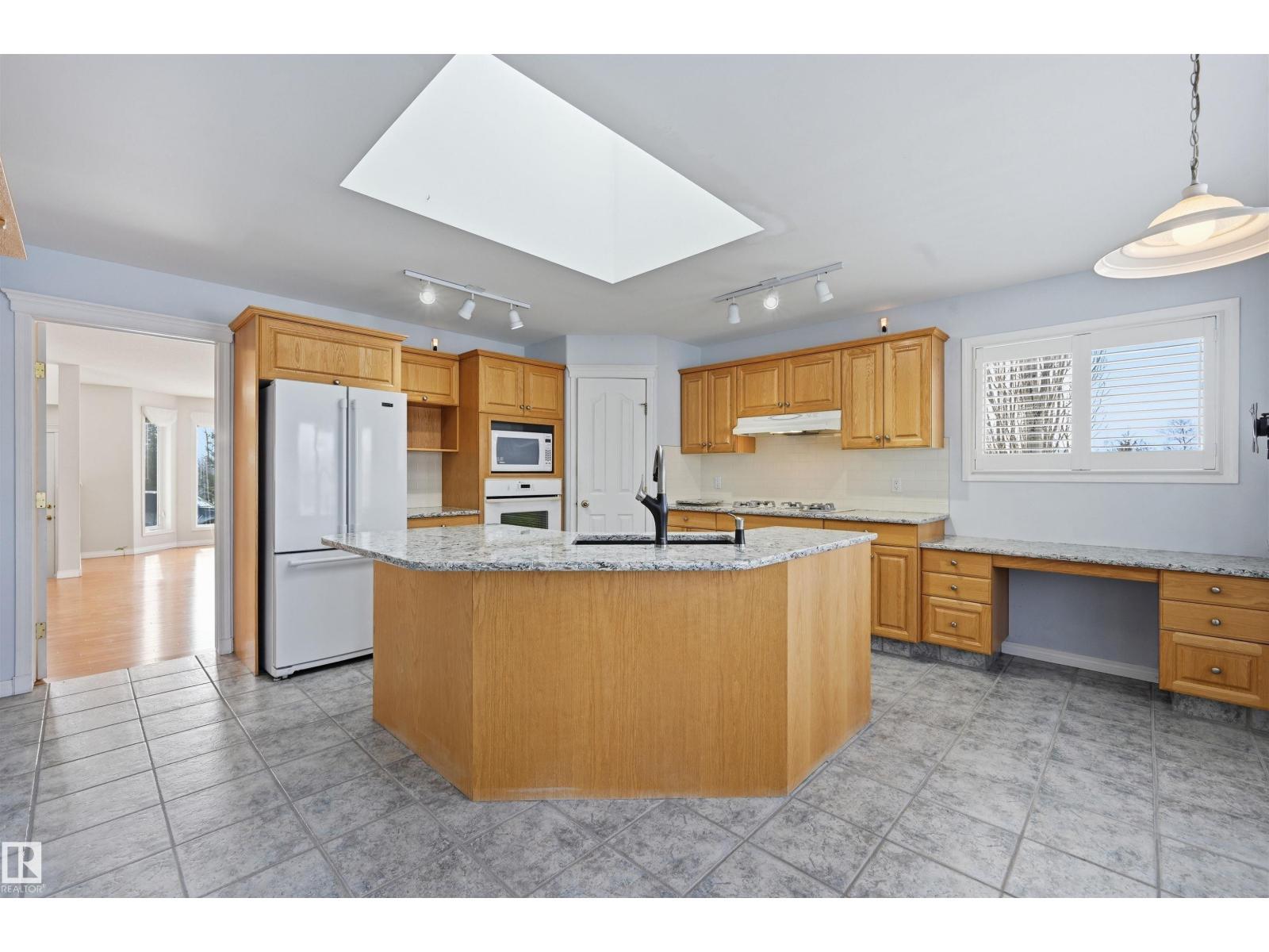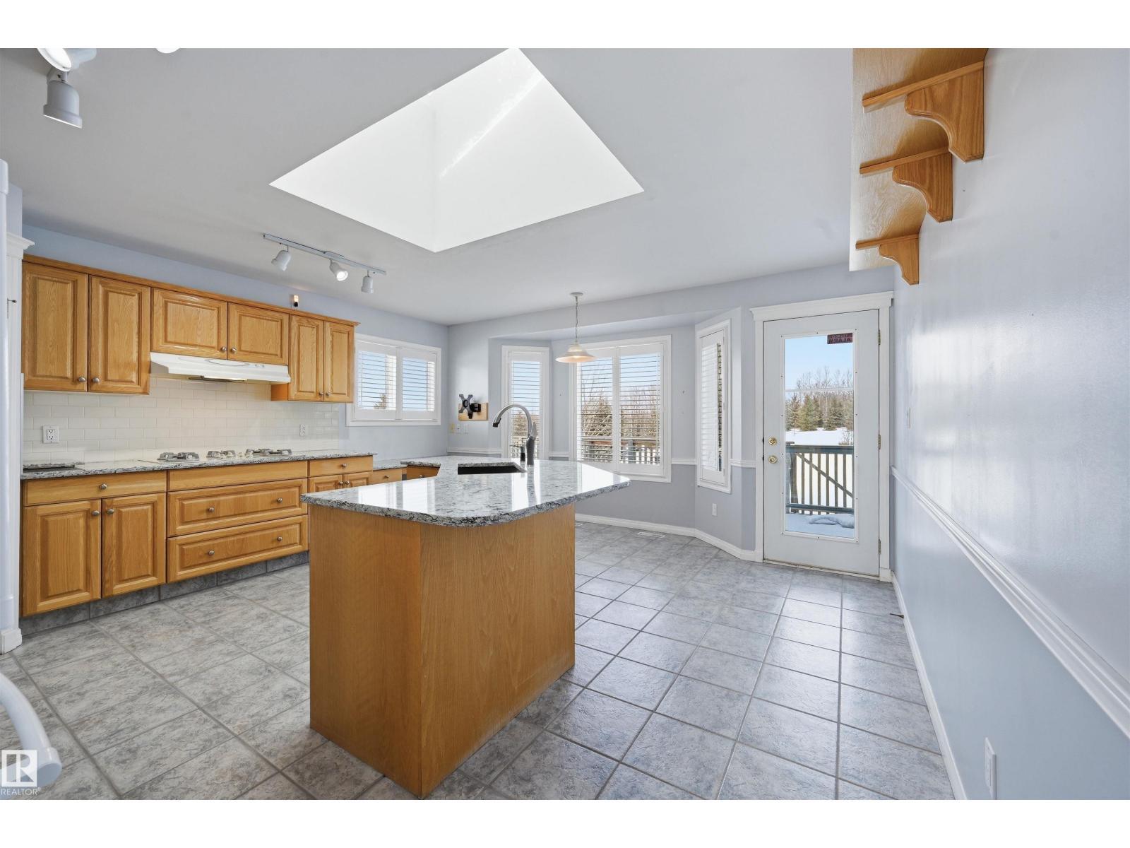 PRIVATE 3.3 ACRE LOT 10 MIN DRIVE TO BEAUMONT IN SCOTTSDALE ESTATES!! Original owner & meticulously maintained! Mature Evergeens border the entire property & create a sense of quiet serenity. Inside, sun lights the home w/ skylights & large windows. Gorgeous gas fireplace in living rm features imported stone surround & provides ample heat in the winter. Kitchen has granite/quartz updates, plenty of cabinets, wall oven & gas stove. Primary retreat w/ spa-like ensuite* & deck access! Main floor complete w/ 2nd bdrm, 2nd bthrm & laundry rm. Basement has in-floor heating, 2nd living area, huge 3rd bdrm, 3pc bthrm & cold storage/storage. Enjoy quiet summer evenings on the wrap-around deck w/ sunset views + apple trees, ample gardening space, firepit area & storage shed. Features: NEW METAL ROOF, NEWER HARDWOOD, newer hot water tank, newer washer/dryer, HEATED OVERSIZED GARAGE, central vac, BBQ gas line & more! *Hot tub could be moved to exterior & freestanding tub installed* 4th bdrm could be added in basement (id:6769)