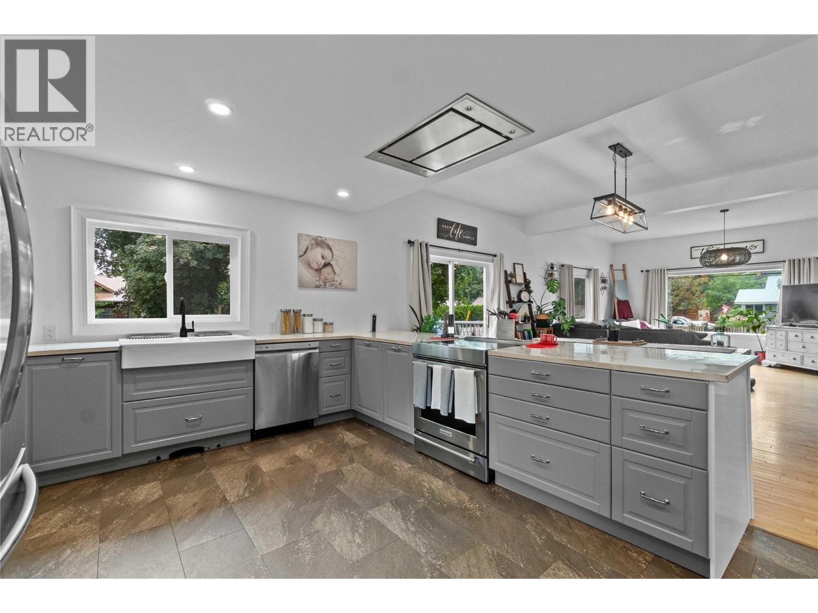 Originally built in 1915 this beautiful iconic home has been extensively renovated in 2018 transforming it into a stunning modern farmhouse while preserving its original charm. Nestled in the heart of Enderby this home is both functional and stylish offering a perfect blend of character and comfort. The interior is spacious with high ceilings, large windows, and open layout that welcomes natural light at every turn. The kitchen is a centerpiece complete with expansive counters, generous cabinetry, and a dedicated coffee bar with its own sink. Making this space ideal for both everyday living and entertaining. The main floor has two generously sized bedrooms and updated bathroom with a large walk-in tiled shower. Upstairs the entire loft has been converted into a stunning primary retreat. The home is exceptionally well-insulated with Ruxol insulation, newer furnace and A/C for year-round comfort. The exterior has been upgraded with durable Hardie siding and a newer roof. The basement remains unfinished but includes a separate entrance, great for a potential suite. The fully fenced yard is ideal for young children or pets. Located within walking distance to schools and amenities this home is perfect for families or anyone looking to enjoy small-town living with modern conveniences. This is truly a one-of-a-kind home in Enderby that needs to be seen to be fully appreciated. Don’t miss your chance to own a piece of history with all the benefits of modern living. (id:6769)