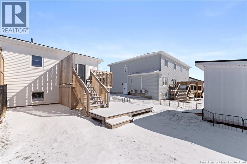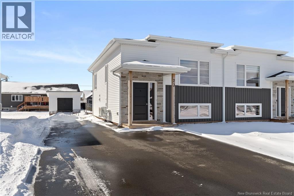 Welcome to 23 Mia Street, a beautiful turn-key semi-detached home located in the heart of coastal Shediac. This newer split-entry property offers 3 bedrooms and 1.5 bathrooms, combining modern style with everyday comfort, all just minutes from the beach, walking trails, and local amenities. The main level features a bright and inviting living room highlighted by a stylish accent TV fireplace wall. The kitchen is designed for both functionality and entertaining, complete with a center island and a seamless flow into the dining area. Patio doors lead to a back deck with desirable southern exposure, perfect for relaxing or hosting guests. A convenient half bath with laundry and included kitchen appliances complete this level. The lower level offers a spacious primary bedroom, two additional bedrooms, and a full bathroom, providing a comfortable and functional layout for family living. Additional highlights include an extra-wide paved driveway, fully sodded landscaping, a mini-split heat pump for efficient year-round comfort, and an owned hot water tank. Whether you're a first-time homebuyer, downsizing, or looking for a great investment opportunity, this move-in ready home offers excellent value in a desirable Shediac location. Dont miss your chancebook your private showing today! (id:6769)