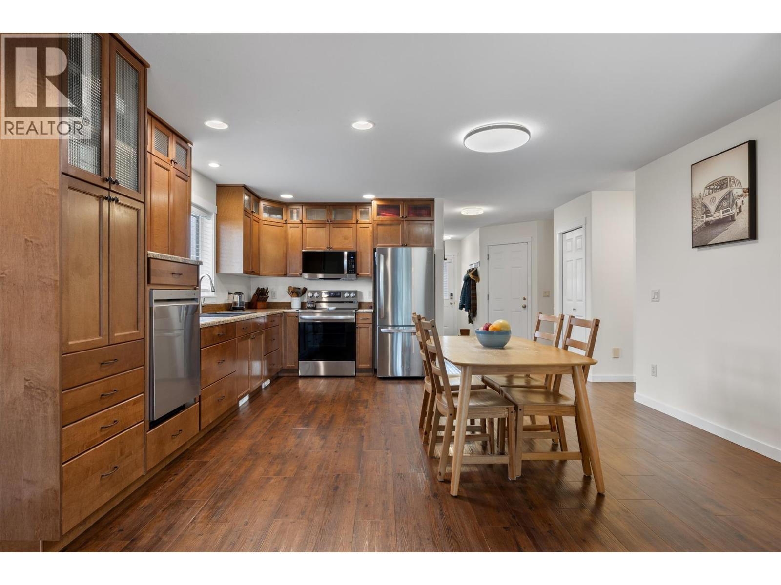 Welcome to 13-1855 Hillside Drive, an immaculate 3-bedroom, 2-bathroom home in the highly desirable Dufferin neighbourhood. Just steps from Kenna Cartwright trails, tennis and pickleball courts, shopping, transit, and Dufferin Elementary, this location offers a great balance of convenience and outdoor lifestyle. The main floor features a bright open living and dining area centered around a cozy gas fireplace, with a view of the Dufferin Wetlands through a natural treed opening that creates a peaceful and private setting year round. The large primary bedroom offers a walk-in closet and cheater access to the main bathroom, while the second bedroom is ideal for young families, guests, or a home office. Downstairs offers a functional and flexible layout with a spacious rec room, a large hobby room perfect for a gym, office, or creative space, plus a third bedroom, full bathroom, laundry, and ample storage. The freshly painted basement and walkout access to the covered patio add to the overall usability of the home. Recent updates include partially updated flooring, new washer and dryer (2024), new dishwasher, and fully updated tub and shower in both bathrooms (2025). Outside, you will appreciate the single-car garage plus two additional driveway parking spaces. Bareland strata with a reasonable monthly fee of $222/month. Pet friendly with restrictions, allowing up to 2 dogs, 2 cats, or one of each. (id:6769)