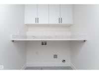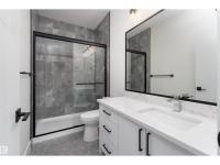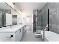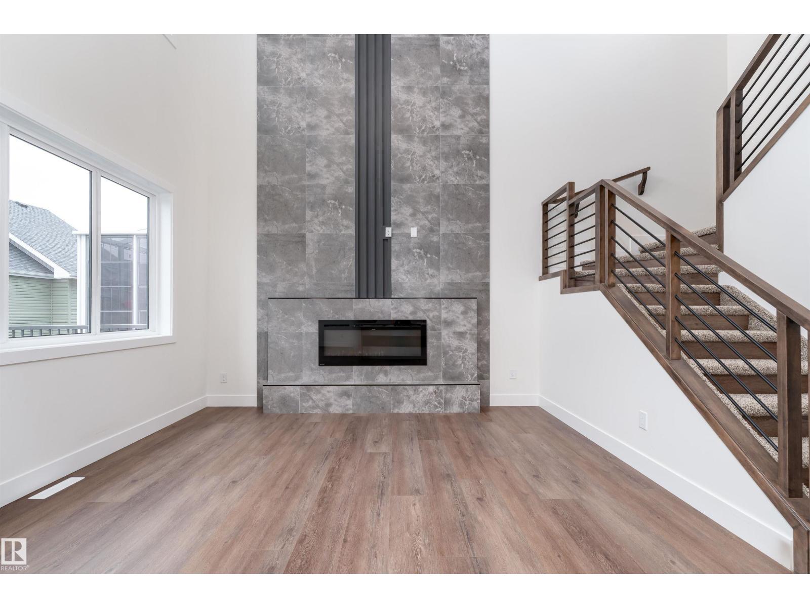 Step into luxury in this brand new, never occupied 2,150 sq ft 2-storey offers a walkout basement, separate entrance, and oversized 3-car garage. Soaring ceilings and an open-concept layout showcase a bright white kitchen with a showpiece island, walk-in pantry, and a dining area surrounded by windows with balcony access. The living room features a dramatic floor-to-ceiling tiled fireplace, while a main floor bedroom and 2-piece bath add convenience. Upstairs, the primary suite shines with a textured accent wall, spa-inspired ensuite with double sinks, soaker tub, stand-up shower, and a walk-through to a spacious walk-in closet. Two more bedrooms, a 3-piece bath, upstairs laundry, and an open family room complete the level. The walkout basement offers potential for a suite, and the oversized 3-car garage easily fits RVs, trucks, or a lift. Close to Gibbons Country Club, Oliver Park, and Gibbons Town Centre, this home is the perfect mix of elegance, function, and lifestyle. Some photos are virtually staged (id:6769)