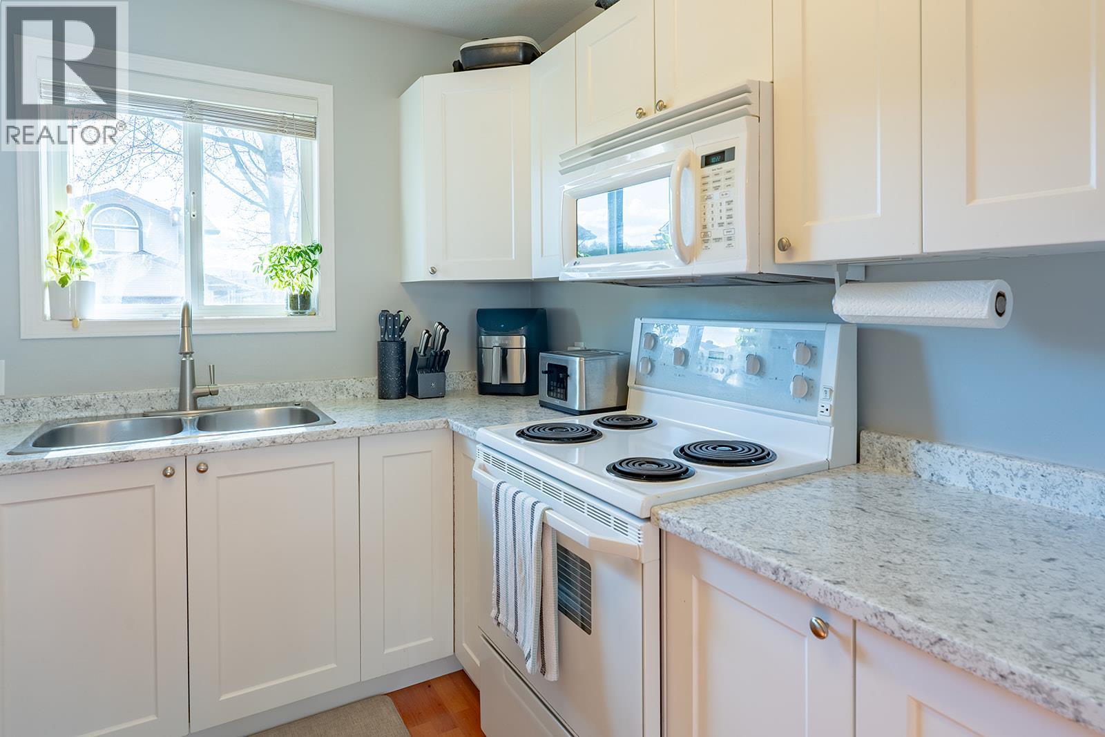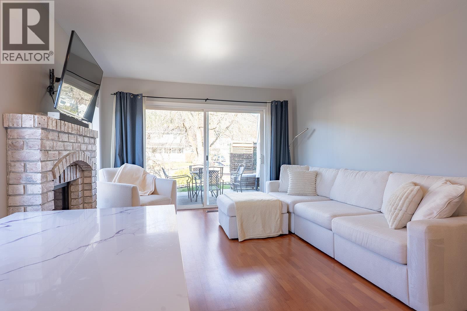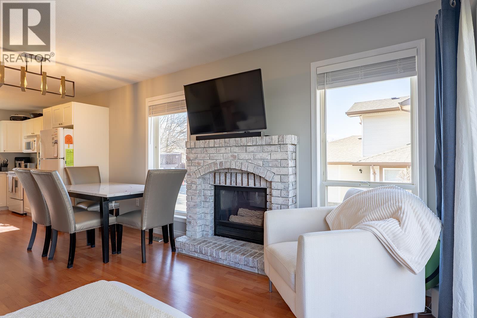 Welcome to this well-maintained corner unit in Wyndham Terrace offering exceptional space, comfort, and thoughtful updates throughout. With 1,895 sq. ft. of living space, this rancher with a fully finished basement is move-in ready, with Poly B plumbing already replaced for peace of mind. The bright main floor features an open-concept layout with large windows, two bedrooms including the primary, a cozy living area with a charming brick-surround gas fireplace, and direct access to a private patio and spacious, lush backyard—an uncommon feature for townhome living. The lower level adds versatility with new plush carpeting, a generous third bedroom, a welcoming family room, a second full bathroom, and abundant storage space. Recent updates include basement carpeting (Dec 2023), furnace and A/C (2022), kitchen cabinets and countertops (2019), hot water tank (2018), PEX plumbing upgrade (July 2024), and an updated main bathroom. As one of the largest units in the complex, it also enjoys a quiet setting that does not back onto Glenmore Rd. Includes two parking spaces. Pet rules allow two cats, with dogs permitted only for medical reasons. Rentals are allowed with no short-term rentals. Ideally located close to schools, transit, shopping, and parks, this home is perfect for first-time buyers or downsizers, with the added benefit of a wheelchair-accessible main floor. (id:6769)