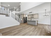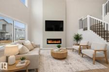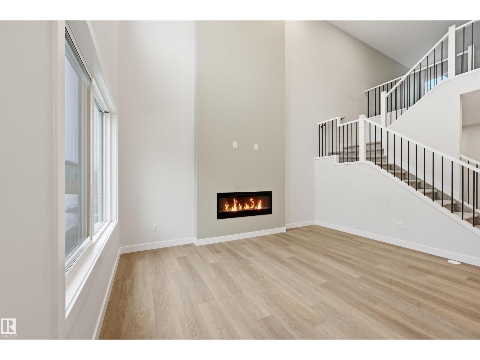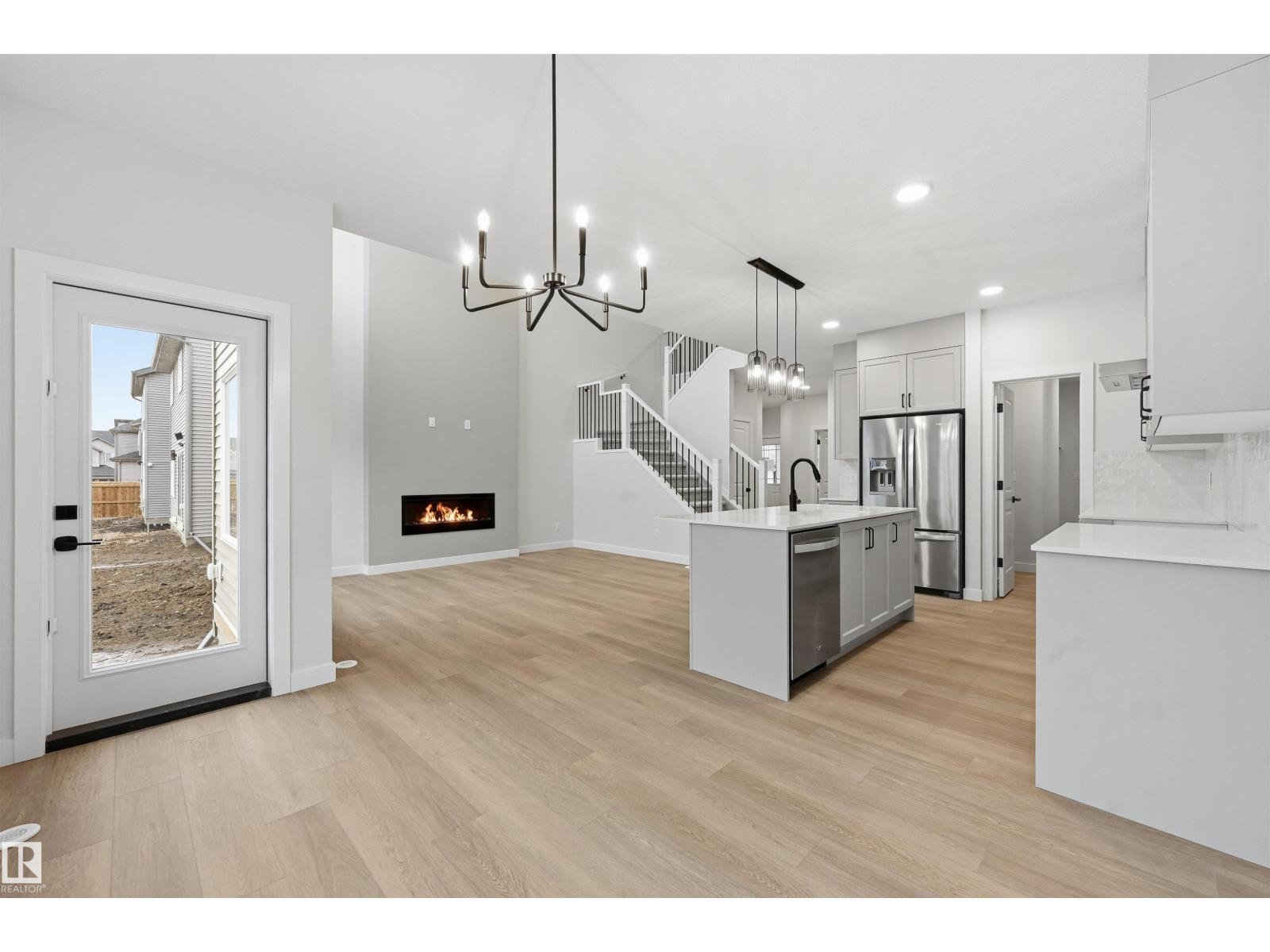 Quality built by Landmark Homes (with nearly 50 years experience in Edmonton)! Boasting nearly 2,100sf this popular floor plan includes a MAIN FLOOR BEDROOM & FULL BATH plus 3 bedrooms upstairs. Bright interior with OPEN-TO-BELOW living room with floor-to-ceiling feature wall & electric fireplace. Kitchen upgrades include full height & soft-close cabinetry, counter-to-cabinet backsplash & a walk through pantry. Plush carpeted 2nd level w/ bonus room, laundry room & large primary retreat with 5pc ensuite & walk-in closet. Features include: SIDE ENTRANCE, 9' ceilings, ENERGY STAR STAINLESS STEEL APPLIANCES including washer & dryer, LVP flooring, cast iron spindle railings & more. With a focus on innovative & energy efficient homes, find features such as tankless hot water heater, high velocity heating system, heat recovery ventilator, 3-stage air purification system, triple pane windows, R50 insulation, spray foam in garage, frost wall in basement & more. See the difference, feel the difference! (id:6769)