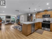This smart floorplan maximizes every sqft with no wasted space! As you enter the foyer of this 1175sqft 2 bedroom, 2 bathroom + a den suite, you’ll be amazing at how open & spacious it is. The sleek flat panel wood kitchen is off the foyer & features tons of cupboard & counter space, stainless steel appliances, & room for stools for the whole family along the bar. The wide-open plan lends itself to many different layouts, & has room for a spacious dining room, large living room, has a feature gas fireplace & two sets of patio doors leading out to your two private covered decks. Facing East, you can take in that beautiful morning sun & enjoy cooler afternoons in the hot summers. There is a large, dedicated den perfect for hobbies or someone who works from home, a large secondary bedroom and a full guest bathroom with tub. The primary suite has patio doors out to one of the decks, a walk-in closet and 2nd closet, plus a spacious ensuite complete with double sinks and a large walk-in shower. This one owner and practically new unit has upgraded floors to have laminate throughout, as well as upgraded baseboards and trim package. This quiet steel and concrete tower has secure underground parking, a storage locker on the same floor as the suite, 2 elevators, amenity rooms, and a bike lock up room. Enjoy living a short stroll to Skaha Lake and park, close to shops, eateries, more! With close access to the highway & airport yet walking distance to parks & trails – this has it all! (id:6769)