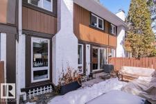 Beautifully renovated air conditioned townhouse in Hearthstone, an upscale condo complex in Brander Gardens, surrounded by big tress & mature landscaping near the river valley where you can enjoy exploring wilderness trails, Fort Edmonton Park, John Janzen Nature Centre & the future Edmonton Nordic Spa. The complex has had all the windows, garage doors & shingles replaced. Recently painted interior in contemporary shades & an amazing new kitchen with quartz counters & stainless steel appliances, modern bathrooms & new LED lighting throughout. Luxury vinyl tile flooring on main & upper levels. Spacious living/dining room with gas fireplace & patio door opening onto the FENCED backyard & patio. Three big bedrooms upstairs with 3 pce bath which has a large walk-in shower. The basement is developed with a recreation/exercise room, 3pce bath, laundry area & plenty of storage. Pets are welcome with Board approval. Easy access to Whitemud Fwy. A home for all ages! Move in & enjoy this wonderful neighbourhood! (id:6769)