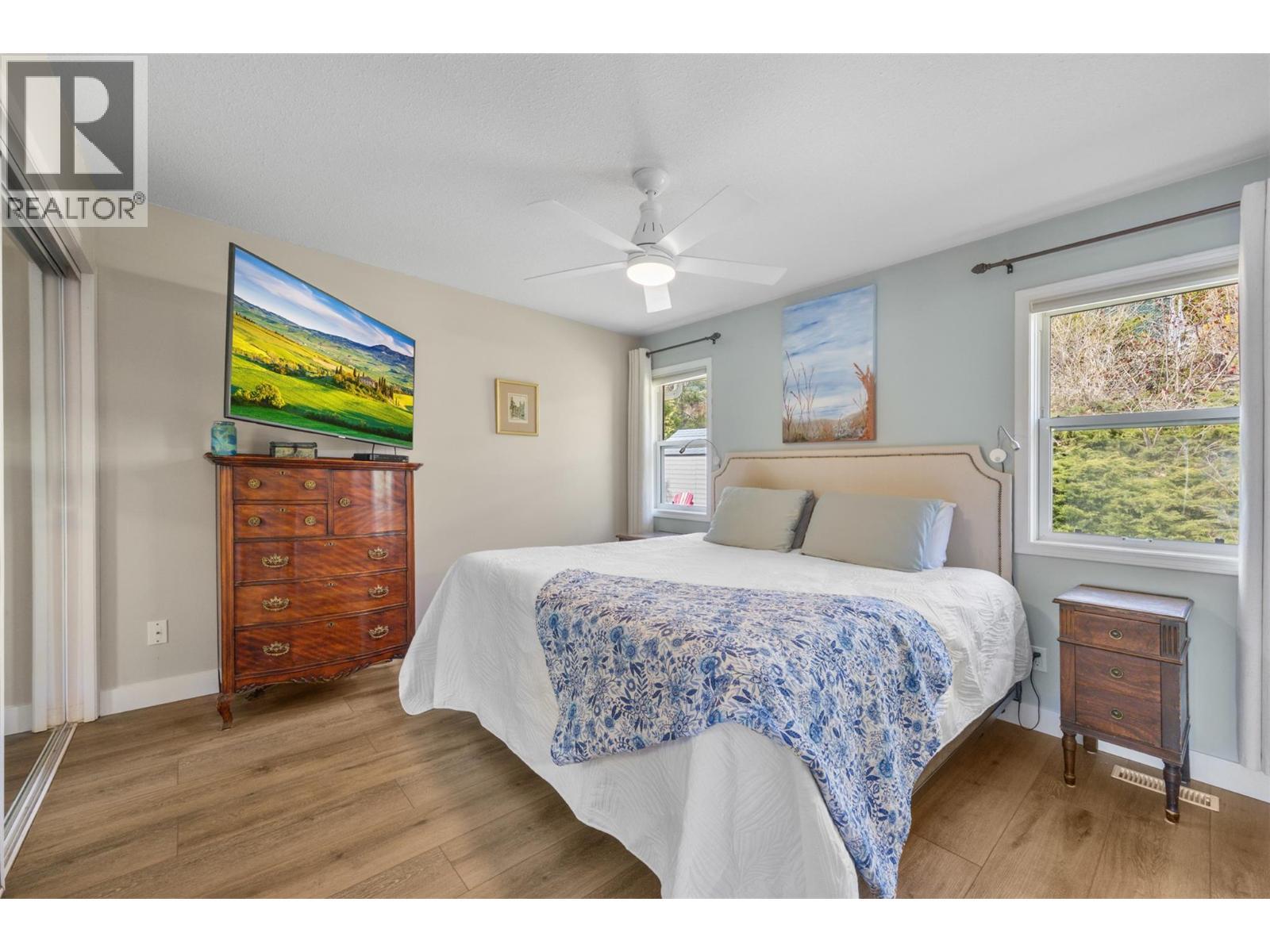 Welcome to this beautifully maintained 2-bed + den | 3 bath home offering lovely lake and mountain views, along with enjoyable outdoor living space in Peachland—proudly known as Canada’s “Kindest Community.” Thoughtfully updated, this home features an inviting open-concept layout with a cozy gas fireplace, built-in cabinetry, and picturesque lake views. The updated kitchen showcases granite countertops, stainless steel appliances, and seamless flow into the dining and living areas—perfect for both everyday living and entertaining. The main-floor primary suite offers a 3-piece ensuite with a new walk-in shower and quartz countertops. The lower level provides excellent flexibility with a spacious family room featuring a second gas fireplace, a den with ensuite, and additional living space for hobbies. Step outside to enjoy the covered front deck with a heater—perfect for year-round use—along with a spacious backyard, patio, and deck complete with a fire table, offering beautiful lake views and an Okanagan lifestyle. Additional highlights include a newer furnace and hot water tank (2024), roof (2015), underground irrigation, a single garage, and a 0.21-acre lot. Ideally located just minutes from beaches, wineries, and everyday amenities. (id:6769)