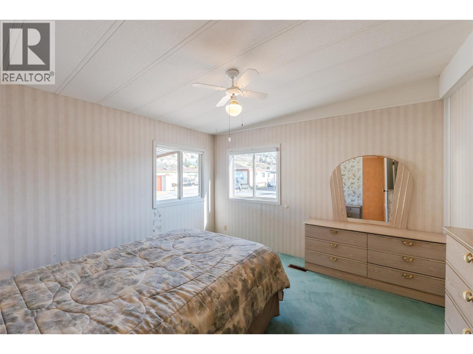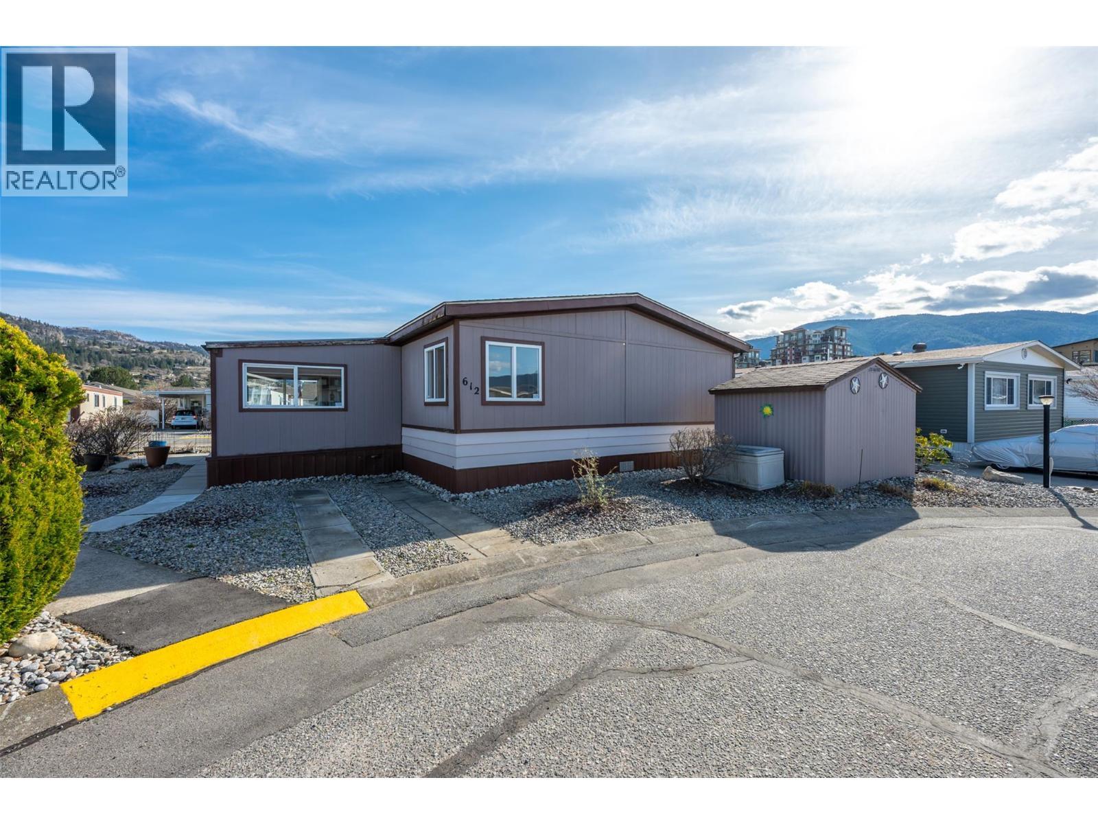 Welcome to Caravilla Estates—where you own your land in a quiet, meticulously maintained bareland strata community steps to Skaha Beach, parks, shopping and more! This bright and airy 2 bed, 2 bath home features a fully open-concept layout, ideal for both everyday living and entertaining. The spacious kitchen offers ample cabinetry with convenient pull-out drawers and flows seamlessly into the dining and living areas. A beautiful sun-filled addition with a wall of windows and southeast exposure captures stunning mountain views—perfect for morning coffee. The thoughtful floorplan offers privacy with the primary bedroom featuring a walk-in closet and ensuite, while the guest bedroom and full 4-piece bathroom are located on the opposite side—ideal for visitors. Laundry and storage area. Outside, enjoy a large corner lot with space for gardening, a powered shed, one covered parking stall plus an additional open stall. Highlights include a brand new hot water tank and dishwasher, ducted heat pump system, newer windows, updated PEX plumbing throughout and a skylight for added natural light. Residents enjoy access to a recreation facility with a games room, exercise room, indoor pool, and hot tub. Strata fee is $235/monthly, 55+ community and no pets allowed. A fantastic opportunity for low-maintenance living in an unbeatable location! Quick Possession Available** (id:6769)