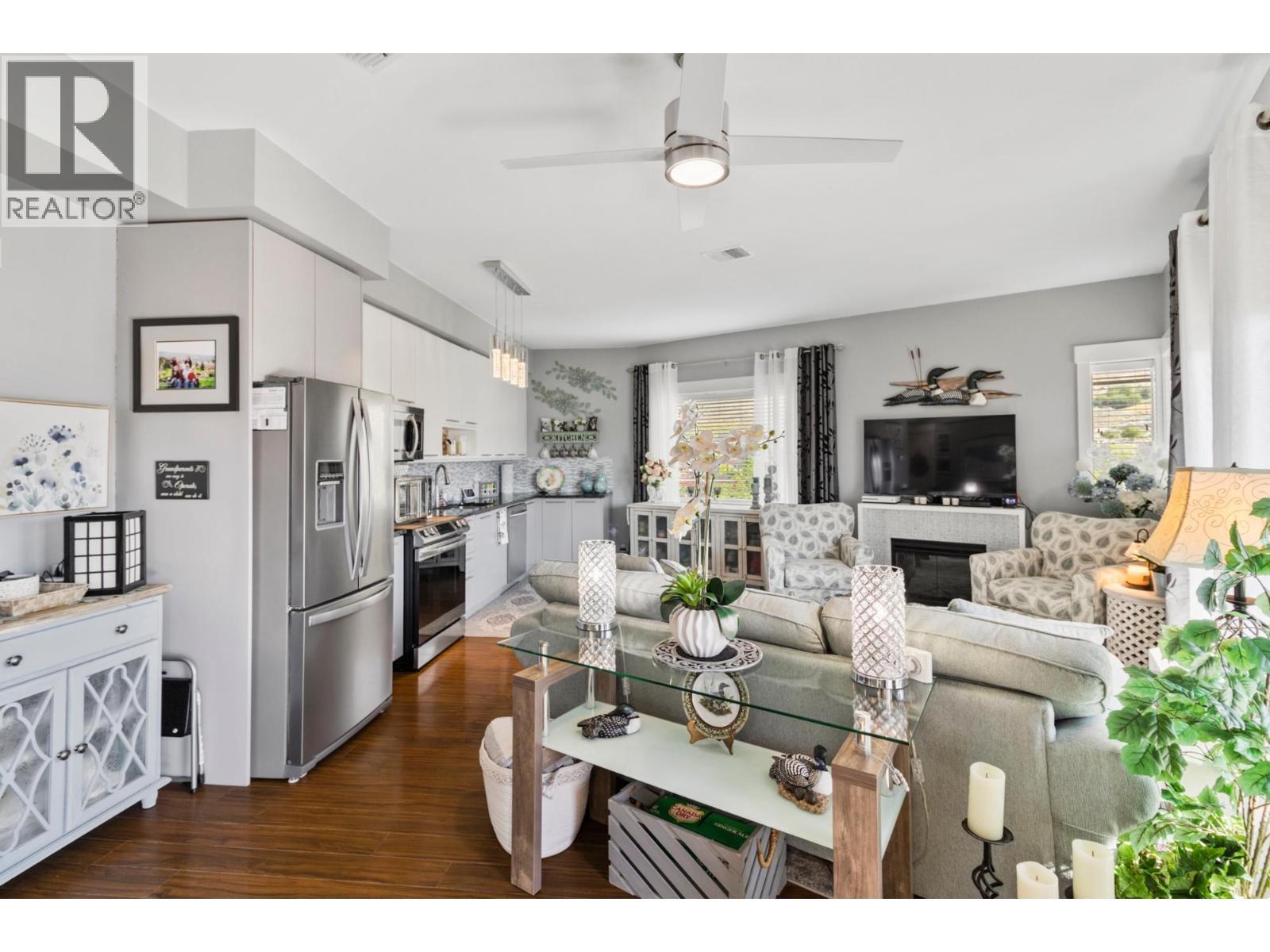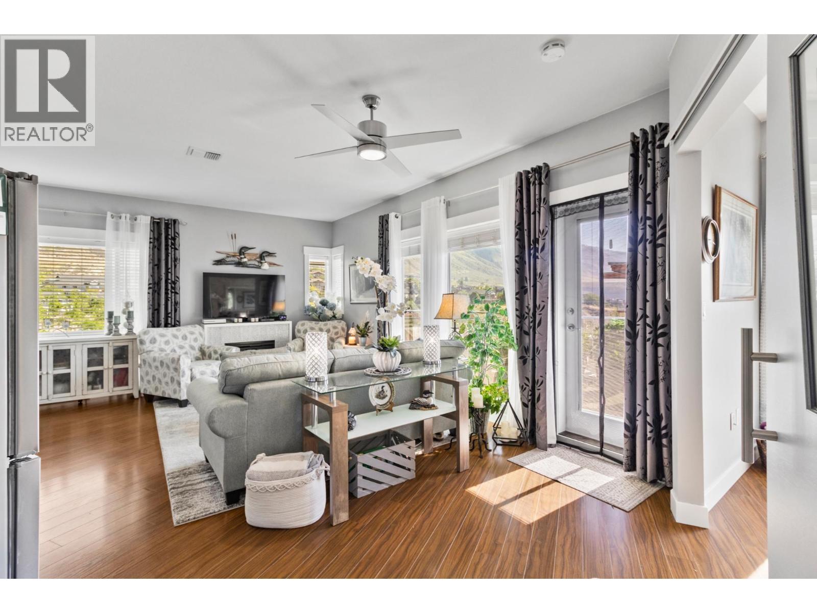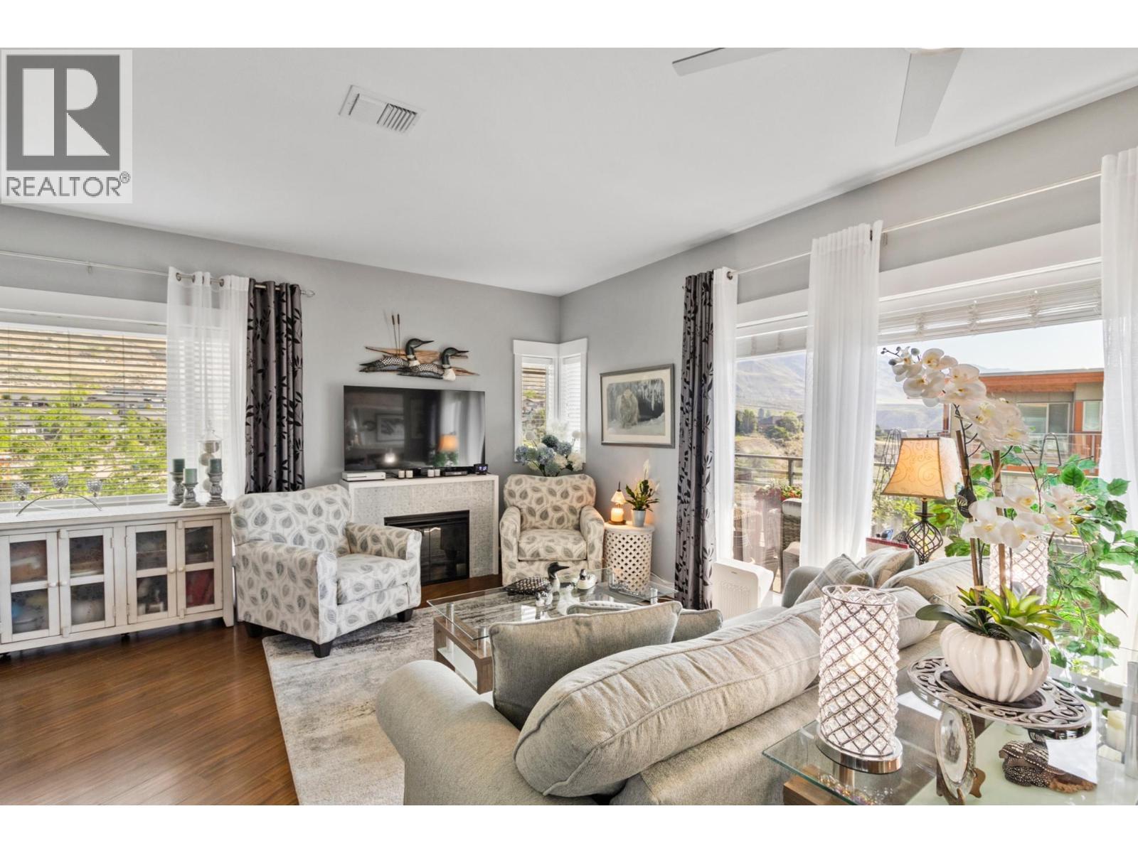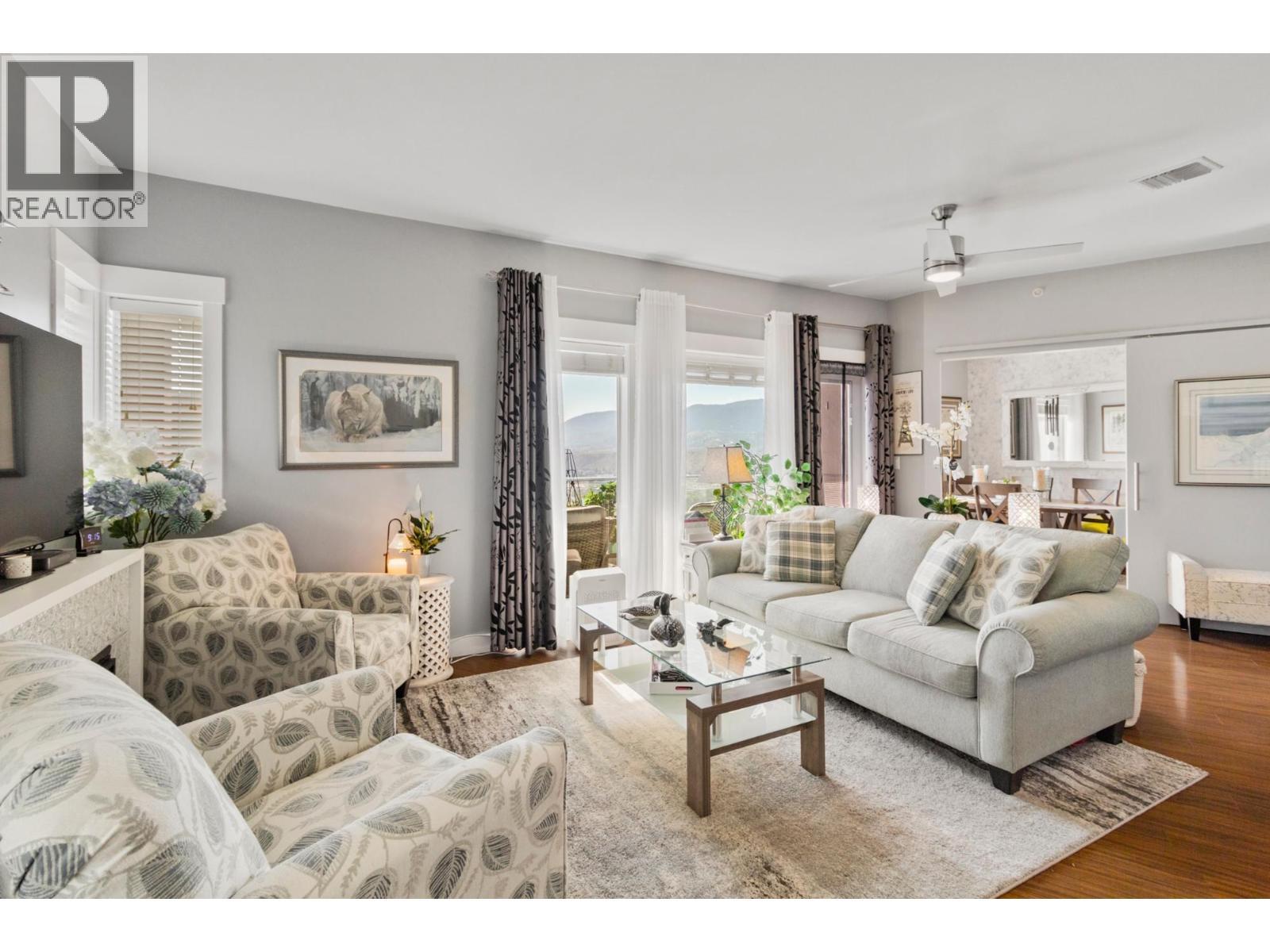Welcome to Sun Rivers living at its finest. This well-maintained four-storey building is ideally located just steps from nature, hiking trails, golf, transit, shopping, and a popular local restaurant. This top-floor corner unit offers a bright, open-concept layout with a modern feel. Featuring 2 bedrooms and 2 bathrooms, the home is enhanced by 9-foot ceilings and large windows that fill the main living space with natural light. The kitchen and living area flow seamlessly, complete with granite countertops, an electric fireplace, updated lighting, and designer ceiling fans. Recent upgrades include a new Whirlpool fridge and Electrolux washer and dryer. The spacious primary bedroom accommodates a king-sized bed and includes a 3-piece ensuite. A second bedroom and full 4-piece bathroom—both with granite counters and glass tub/shower surrounds—complete the interior. Enjoy breathtaking east-facing views of the river and mountains from the private sundeck. Additional features include geothermal heating and cooling, secure underground parking, a storage unit, two elevators, and a security system. Pets and rentals are allowed. All measurements are approximate and should be verified if important. (id:6769)
