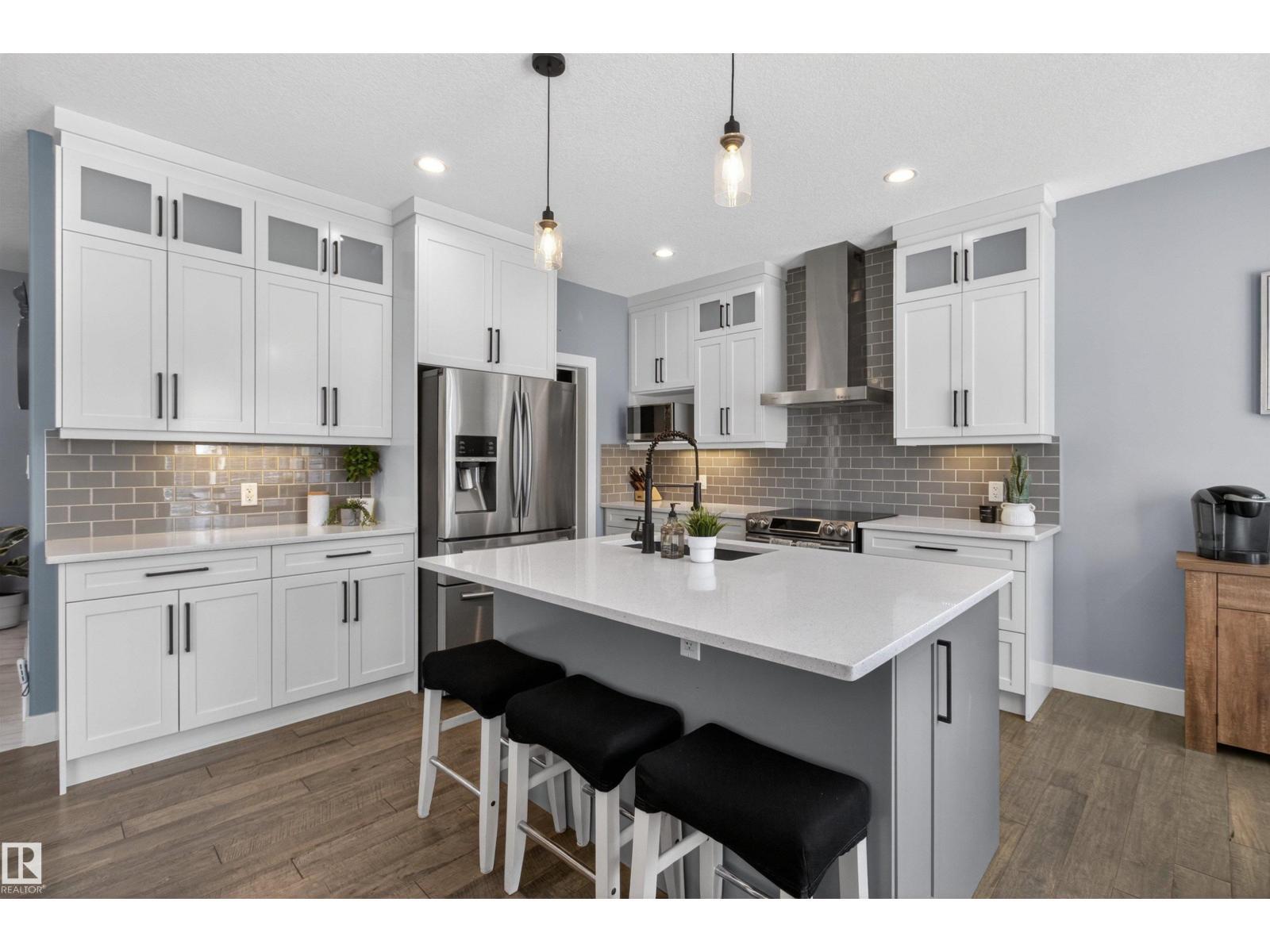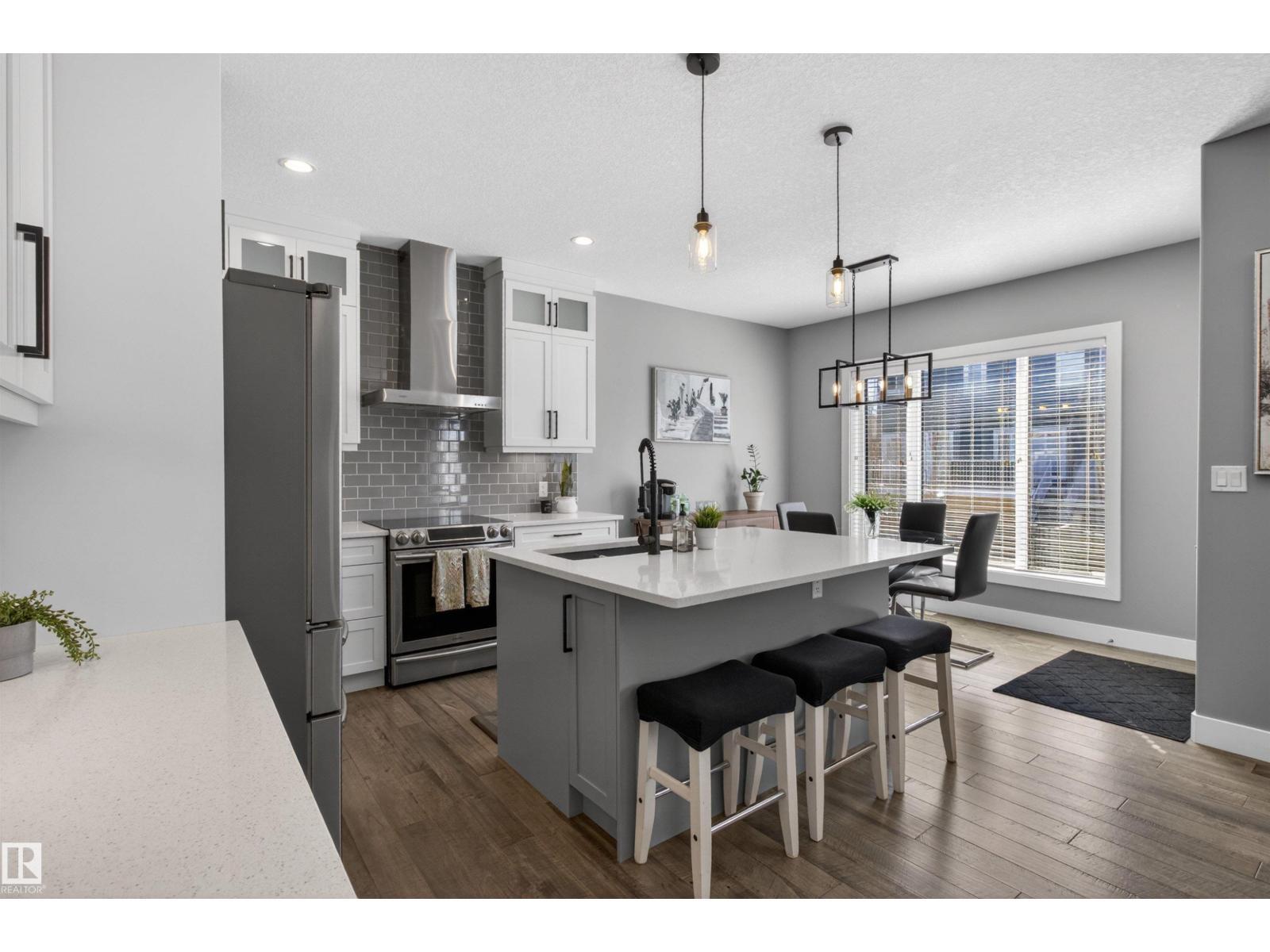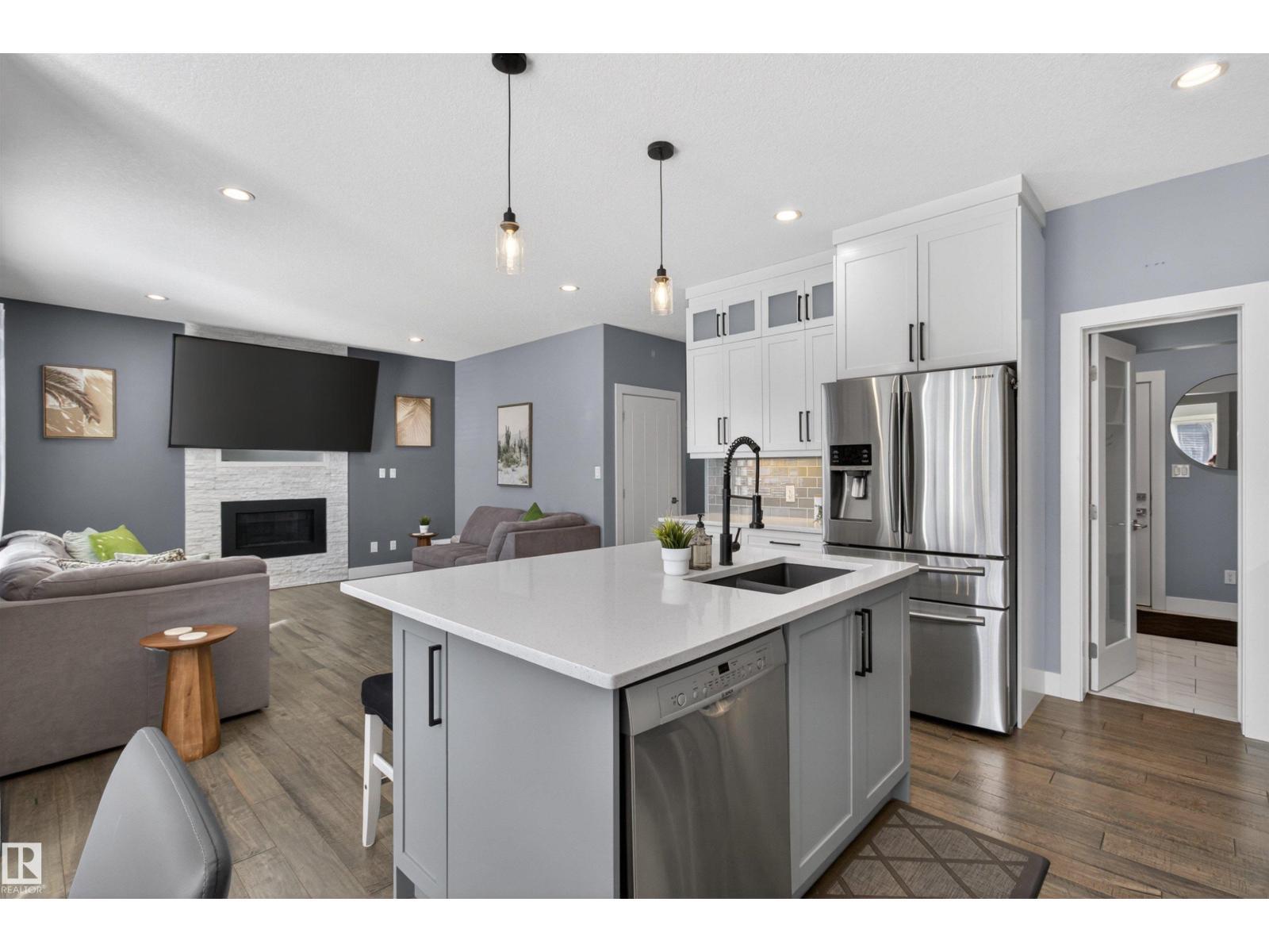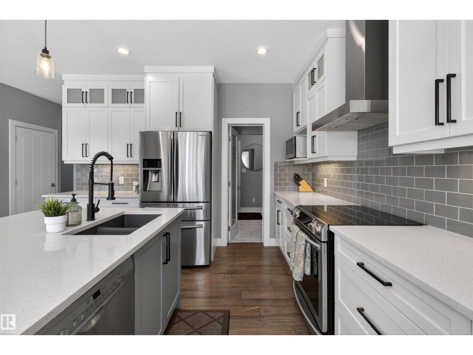 GORGEOUS FAMILY HOME! Prime location in the heart of South Fort Meadows in Fort Saskatchewan. Featuring an open concept with a grand entrance leading to the beautiful main floor with STUNNING KITCHEN! Quartz counter tops, stainless steel appliances, pantry and a large dining area. Spacious living room with cozy natural gas fireplace. Large back entrance with custom shelving and a 2 piece powder room complete the main level. Upstairs are 3 generous bedrooms. The Primary Bedroom features a luxurious 5-piece ensuite with soaker tub, double sinks, and double wide shower plus a walk-in closet. Convenient upstairs laundry & a full 4-piece bathroom. Gorgeous SOUTH-FACING BACKYARD with huge composite deck to enjoy! An OVERSIZED DOUBLE ATTACHED GARAGE 22.5’ x 25’ (interior measured). Upgrades include: CENTRAL AIR-CONDITIONING, quartz countertops throughout, upgraded carpet and hardwood, upgraded appliances, and composite decking. See it and you will love it! Visit REALTOR® website for information. (id:6769)