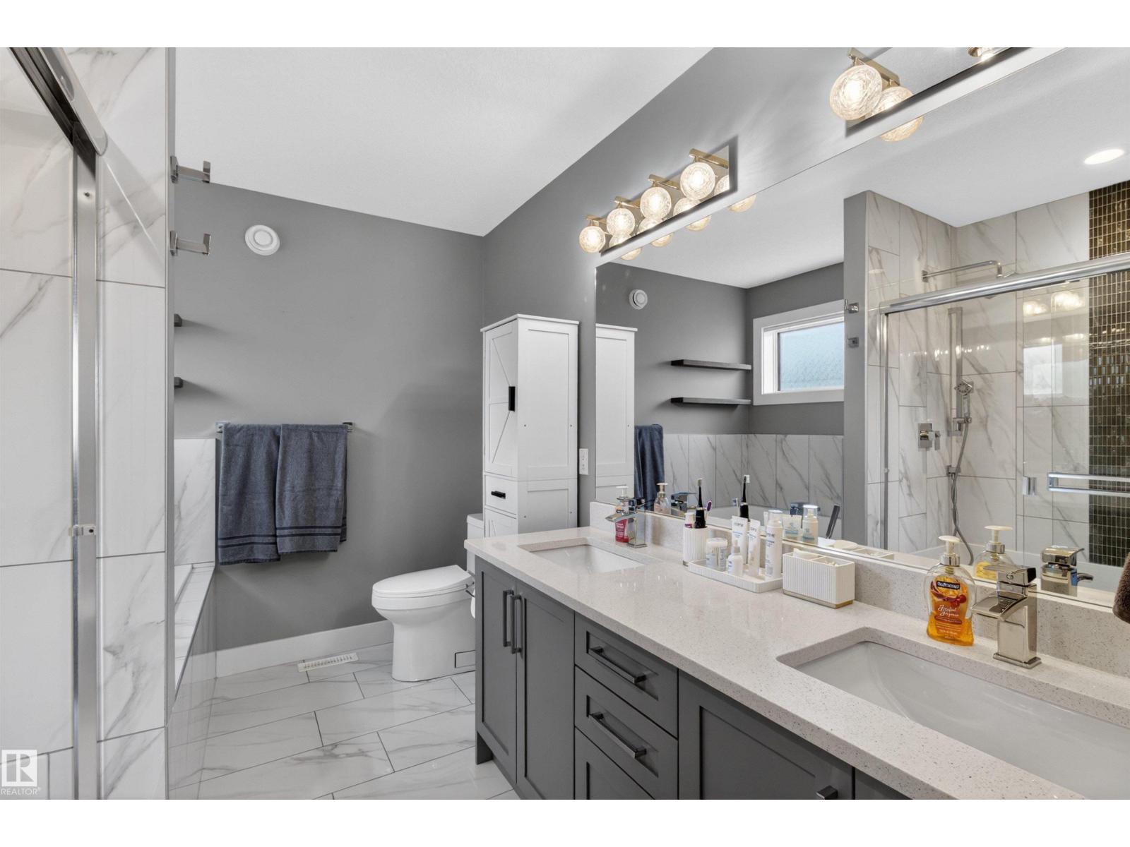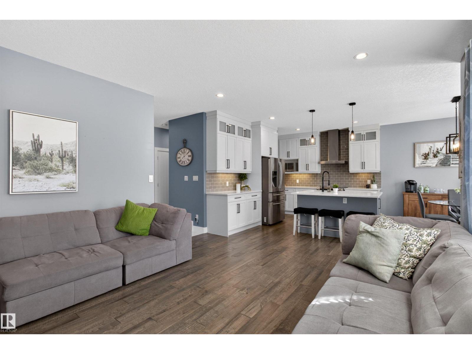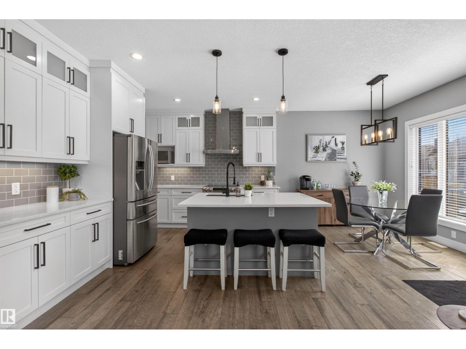 GORGEOUS FAMILY HOME! Prime location in the heart of South Fort Meadows in Fort Saskatchewan. Featuring an open concept with a grand entrance leading to the beautiful main floor with STUNNING KITCHEN! Quartz counter tops, stainless steel appliances, pantry and a large dining area. Spacious living room with cozy natural gas fireplace. Large back entrance with custom shelving and a 2 piece powder room complete the main level. Upstairs are 3 generous bedrooms. The Primary Bedroom features a luxurious 5-piece ensuite with soaker tub, double sinks, and double wide shower plus a walk-in closet. Convenient upstairs laundry & a full 4-piece bathroom. Gorgeous SOUTH-FACING BACKYARD with huge composite deck to enjoy! An OVERSIZED DOUBLE ATTACHED GARAGE 22.5’ x 25’ (interior measured). Upgrades include: CENTRAL AIR-CONDITIONING, quartz countertops throughout, upgraded carpet and hardwood, upgraded appliances, and composite decking. See it and you will love it! Visit REALTOR® website for information. (id:6769)