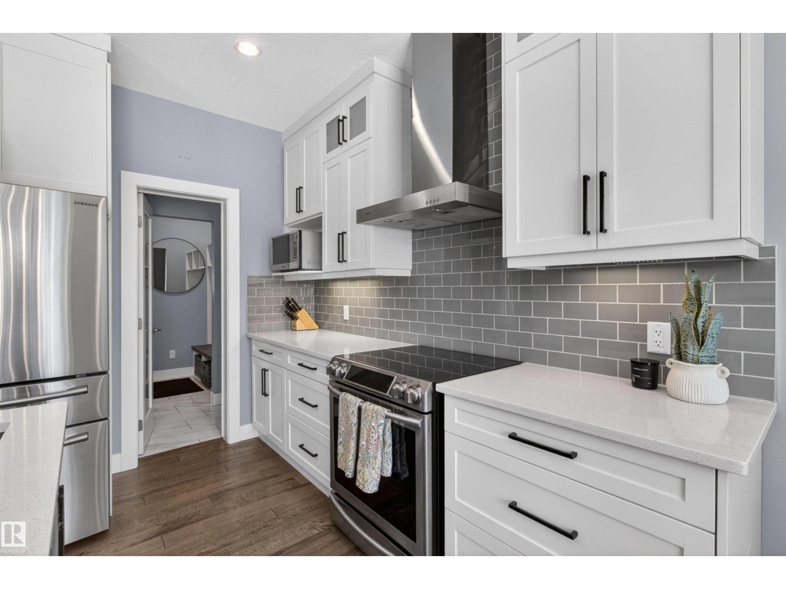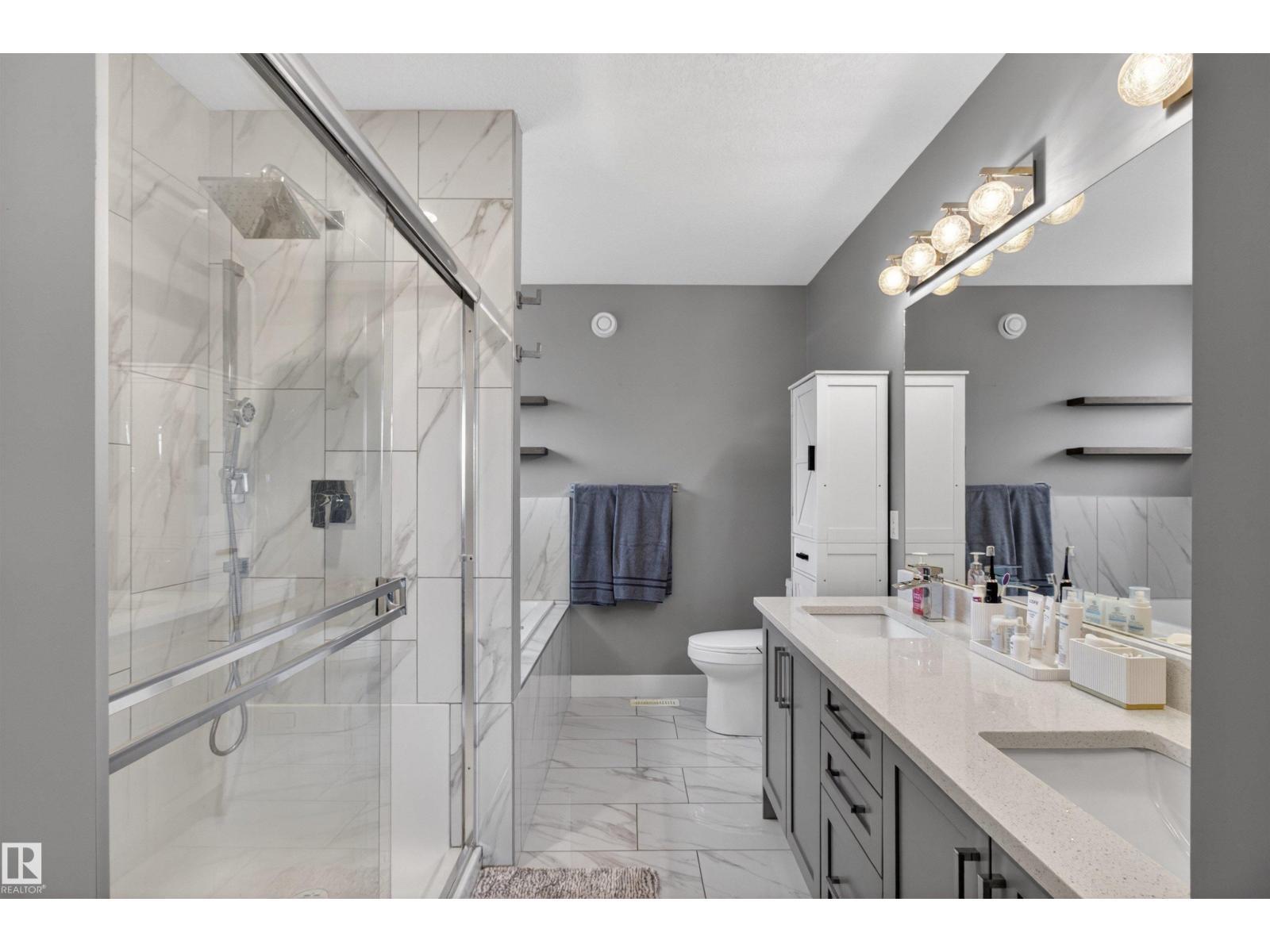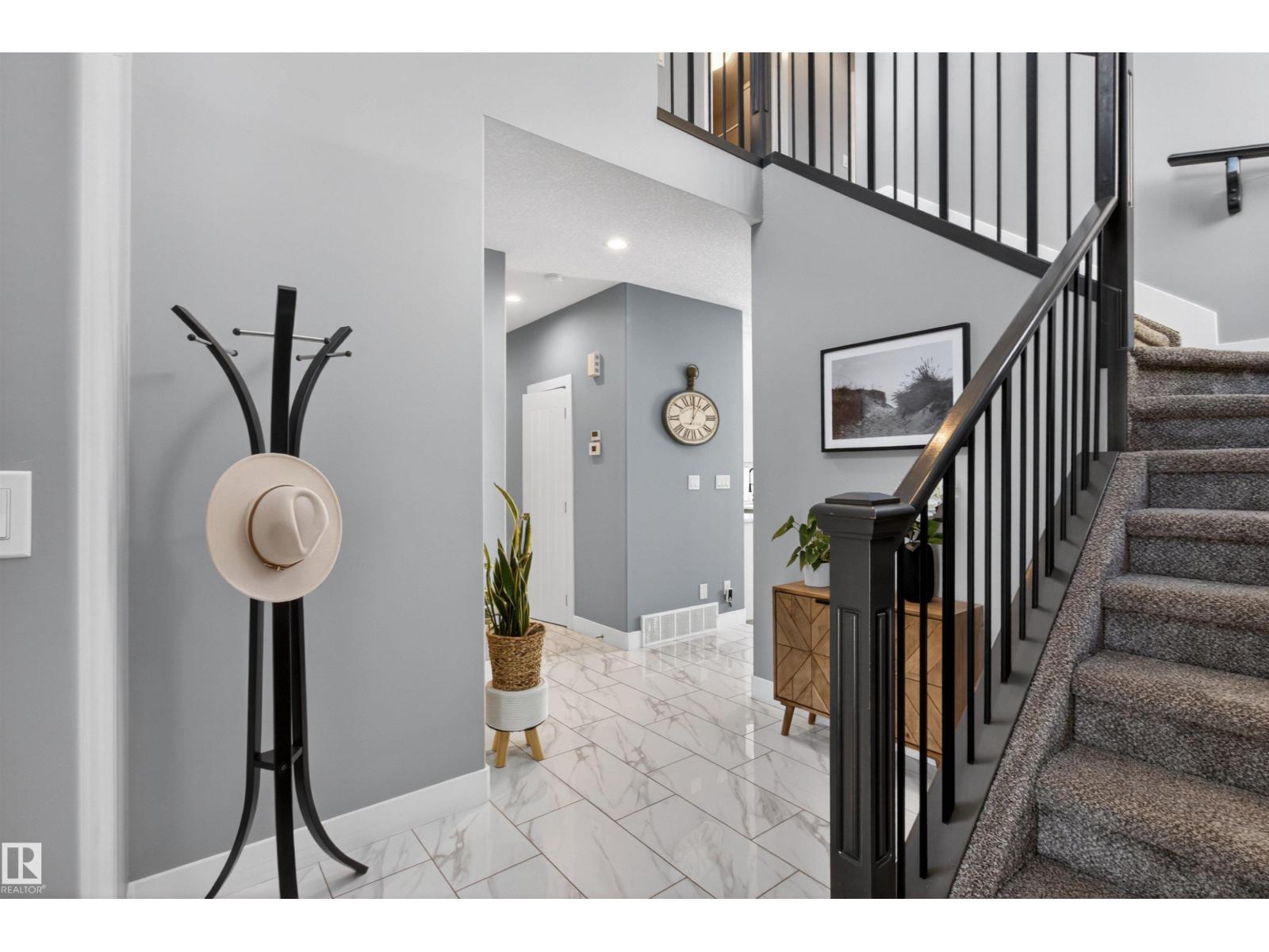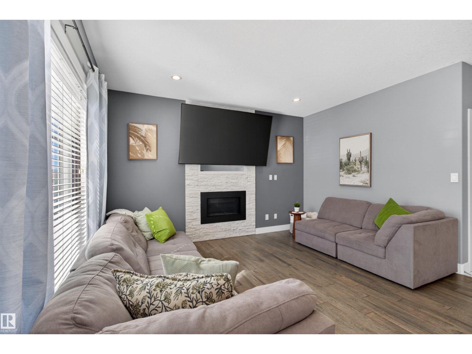 GORGEOUS FAMILY HOME! Prime location in the heart of South Fort Meadows in Fort Saskatchewan. Featuring an open concept with a grand entrance leading to the beautiful main floor with STUNNING KITCHEN! Quartz counter tops, stainless steel appliances, pantry and a large dining area. Spacious living room with cozy natural gas fireplace. Large back entrance with custom shelving and a 2 piece powder room complete the main level. Upstairs are 3 generous bedrooms. The Primary Bedroom features a luxurious 5-piece ensuite with soaker tub, double sinks, and double wide shower plus a walk-in closet. Convenient upstairs laundry & a full 4-piece bathroom. Gorgeous SOUTH-FACING BACKYARD with huge composite deck to enjoy! An OVERSIZED DOUBLE ATTACHED GARAGE 22.5’ x 25’ (interior measured). Upgrades include: CENTRAL AIR-CONDITIONING, quartz countertops throughout, upgraded carpet and hardwood, upgraded appliances, and composite decking. See it and you will love it! Visit REALTOR® website for information. (id:6769)