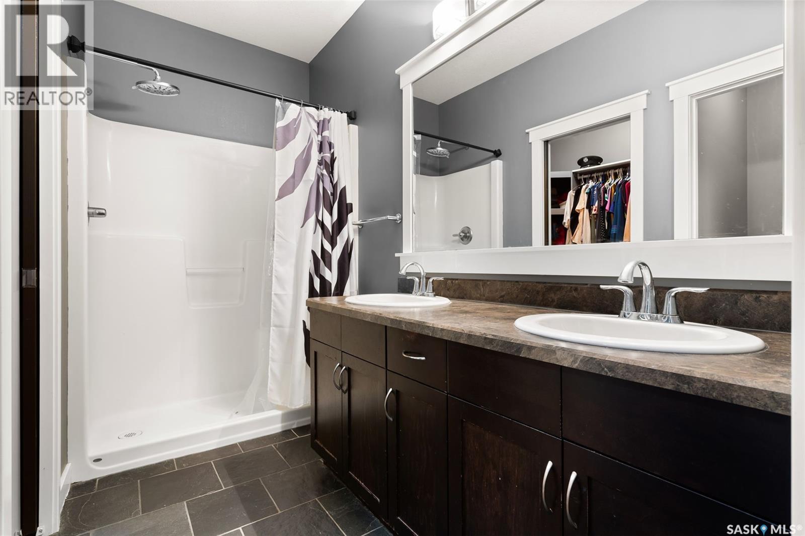 Welcome to 37 Churchill Crescent, White City – A move-in-ready family home just minutes from Regina and an easy walk to the brand-new school. From the moment you arrive, the xeriscaped front yard delivers jaw-dropping curb appeal with almost zero upkeep. Step inside to soaring vaulted ceilings, designer pot lights, and sunlight pouring across the open main floor. A stacked-stone gas fireplace anchors the living room, flowing seamlessly into the dining area and a chef-worthy kitchen featuring rich espresso maple cabinetry, granite counters, a huge eat-up island, walk-in pantry, and direct access to the covered veranda for effortless indoor-outdoor living. The private primary suite is a true retreat with its own deck door, spa-like 4-piece ensuite, and spacious walk-in closet. Two more bright bedrooms with clever recessed closets, a stylish 4-piece main bath, and convenient main-floor laundry round out the main level. Downstairs, the fully finished basement is built for fun and comfort: massive family room, dedicated games area, sleek wet bar, an oversized fourth bedroom, full 4-piece bath, and tons of storage. Builder spray-foam insulation keeps everything cozy and energy bills low. The heated 32'×26' triple garage with 14' ceilings and room for a car lift (negotiable) is a rare gem. The backyard is pure joy: hot tub, fenced dog run, raised garden beds, storage shed, underground sprinklers, and a huge covered veranda that extends the season. Meticulously maintained, loaded with upgrades, and ready for you to move in – this is the turn-key White City dream home you’ve been waiting for. Come fall in love today. (id:6769)