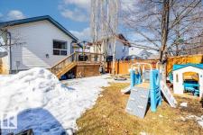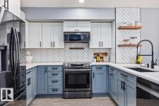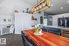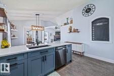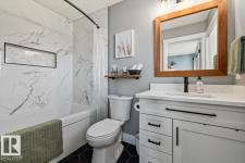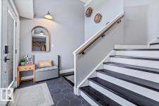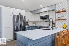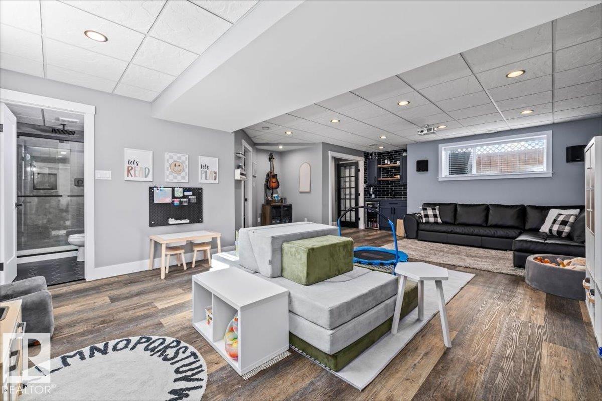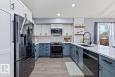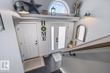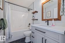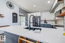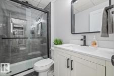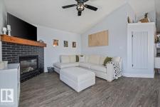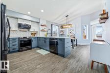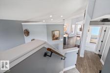 Step into luxury with this immaculately updated 1,339 sq ft bi-level in the desirable Westpark community. Completely renovated with high-end finishes from top to bottom, this 4-bedroom, 3-bathroom home impresses with vaulted ceilings and sophisticated style. The main floor features new vinyl plank and tile flooring, a stunning kitchen with stainless steel appliances, and a spacious living room centered by a gas fireplace with a custom tile surround. The private upper level is dedicated to the primary suite, boasting a walk-in closet and a 4-piece ensuite with a custom bath/shower combo. The fully finished basement offers a massive rec room, walk-up bar, fourth bedroom, and ample storage. Outdoor living is a dream with a beautifully landscaped yard, large wood deck, and a dedicated hot tub pad. Located just steps from the Fort Saskatchewan River Valley, boat launch, dog park, and all major amenities, this turn-key home offers the perfect blend of modern comfort and lifestyle convenience. (id:6769)