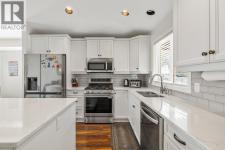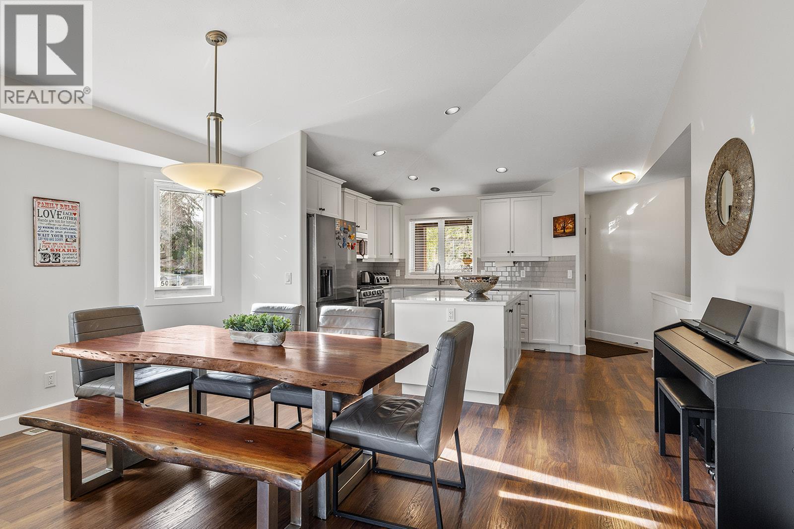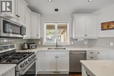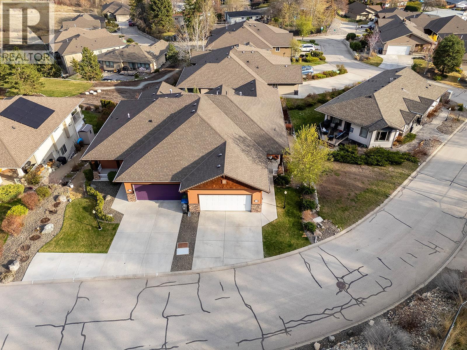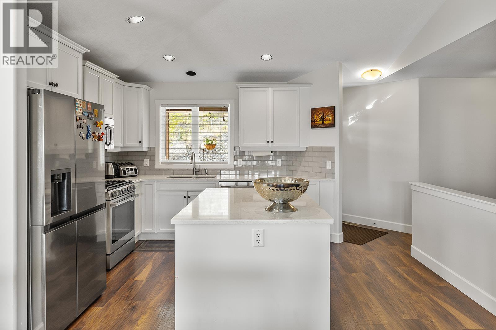 Mountain views and a cul-de-sac address in Black Mountain, this 4-bed, 3-bath walkout rancher in the Blackstone complex delivers low-maintenance living without compromise. The main floor flows through a bright living and dining area with vaulted ceilings and a gas fireplace, opening to a covered deck where the valley and mountain views take centre stage. The kitchen features quartz countertops, a gas range, and an island, built for the way you actually cook and entertain. The primary suite includes a full 4-piece ensuite, with a second bedroom, full bath, and main floor laundry rounding out the main level. Downstairs, the fully finished walkout basement, with its own separate side entrance, adds two more bedrooms, a large rec room, full bath, and generous storage, ideal for guests, teens, or a home office. Outside is a fully fenced landscaped yard with underground irrigation, stone and vinyl exterior, and a double attached garage with two additional uncovered stalls. Steps away from Black Mountain Golf Course, parks, hiking trails, schools, and transit. No thru street. Move-in ready. (id:6769)