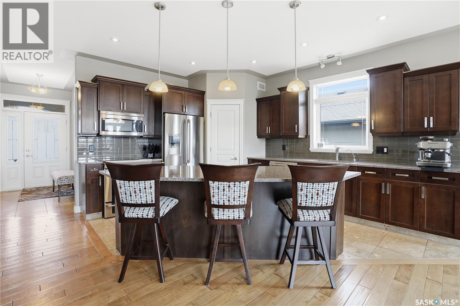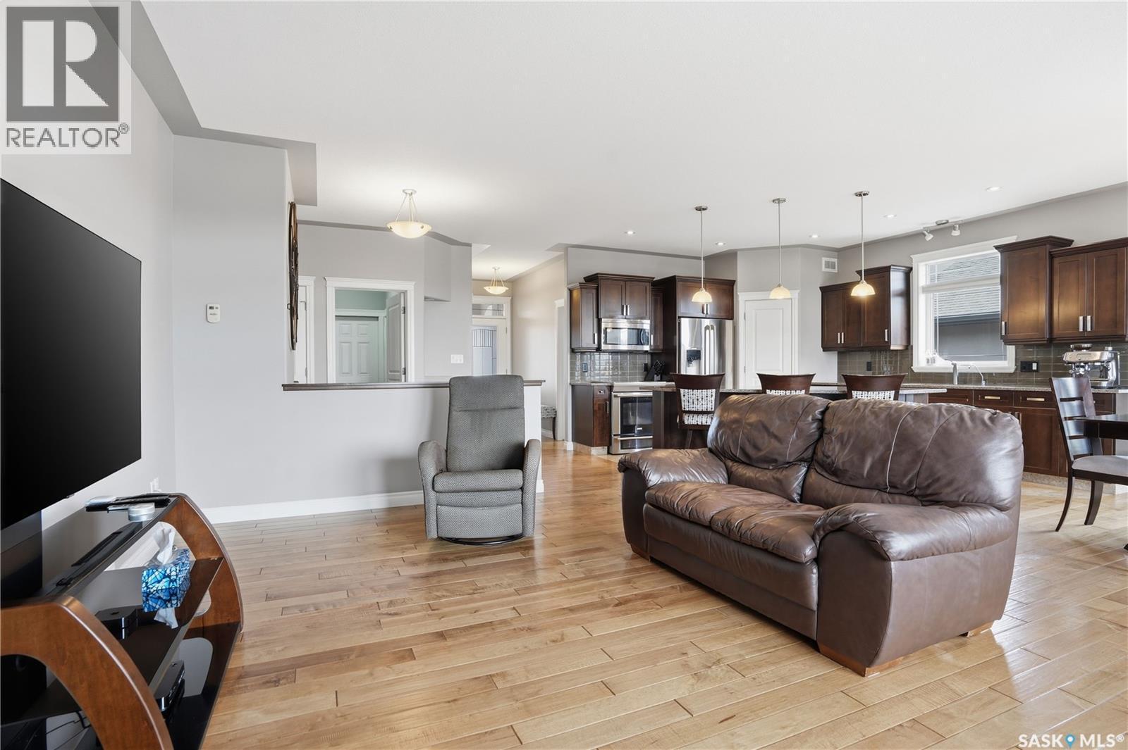 Backing the Aspen Links Golf Course in the heart of White City, 396 Fairway Road is a home that earns its reputation through craftsmanship, a thoughtful layout, and an outdoor space you’ll love. Just minutes from Regina, White City offers tree-lined streets, good schools, and a pace of life the city can't quite replicate. Inside this 1572 sq/ft bungalow, the main floor opens to a large kitchen anchored by center island, maple cabinetry, stainless steel appliances, granite countertops, a pantry, and tile flooring. French doors in the dining nook lead to the backyard. The living room offers hardwood floors, a gas fireplace with stone surround, and views that remind you exactly where you live. The primary bedroom is a retreat featuring a walk-in closet and a 4-pc ensuite with a granite counter, soaker tub, and a stand-alone shower. A second bedroom, functional office, 4-piece bath, and a laundry nook with a sink off the garage round out a floor plan built for real life. Downstairs, you’ll enjoy the massive recreation room, two additional bedrooms, a 4-piece bath, and serious storage in the utility room. This home has great curb appeal with stucco exterior and a 24'x26' double attached garage that is heated, insulated, and ready for a Saskatchewan winter. The backyard is fully landscaped and complete with a railed deck, outdoor kitchen, stone patio, fire circle, and beyond the fence - the fairways of Aspen Links as your permanent view. Value added features include central A/C, central vac, natural gas BBQ hookup, alarm system, and an underground sprinkler system. This home is completely ready for you to enjoy - call your agent to schedule your showing today. (id:6769)
