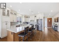 Welcome to refined living in the sought-after Rio Vista community of Sun Rivers. This beautifully maintained 3 bedroom + den, 3 bathroom rancher with full basement offers a bright, open concept main floor designed for both everyday comfort and effortless entertaining. The kitchen features quality cabinetry, ample counter space, and a central island, flowing seamlessly into the dining and living areas where a modern electric fireplace creates a warm focal point. The main level includes a spacious primary bedroom with walk-in closet and ensuite, a dedicated office, convenient 2-piece powder room, and main floor laundry. Sonos sound is wired into the kitchen, ensuite, and upper deck, enhancing the indoor-outdoor lifestyle. Downstairs, the fully finished basement offers a generous rec room, two bedrooms, a full bathroom, and a dedicated media room complete with wet bar and beer fridge—perfect for movie nights and entertaining—plus a separate wine storage area. Geothermal heating and cooling provides efficient year-round comfort. Additional features include rough-in for central vacuum, gas BBQ hookup on the upper deck, and electrical rough-in for a hot tub on the lower deck. Enjoy low maintenance outdoor living with hillside and city views, all just minutes from downtown Kamloops, golf, and walking trails. (id:6769)
