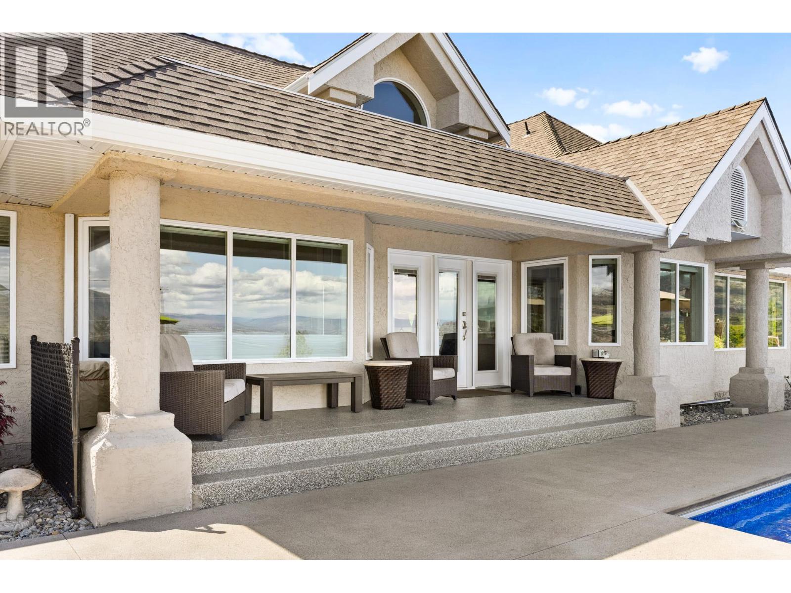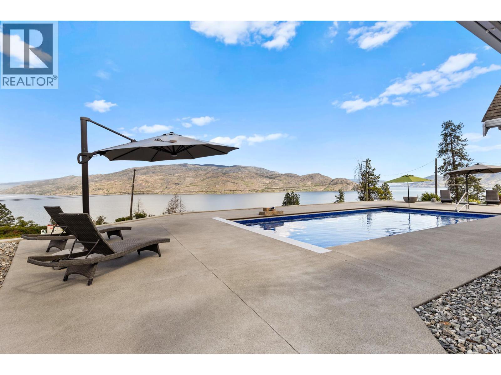 Car enthusiasts and those seeking the idyllic Okanagan lifestyle—this is the one. Set on 1.42 acres with unobstructed lake views, this rare offering combines privacy, space, and resort-style living. This sprawling rancher features Brazilian hardwood floors, a formal living and dining area, and a bright, open-concept kitchen designed for entertaining, complete with granite countertops, gas range, island with raised eating bar, walk-in pantry, and a breakfast nook—all oriented to capture sweeping lake views. A seamless transition leads to the covered patio and pool area, where the pool (with electric cover) and surrounding deck have been recently rebuilt. Thoughtful landscaping enhances the views while minimizing maintenance. The spacious primary suite is privately located on the upper level, offering vaulted ceilings, a cozy sitting area, walk-in closet, and a well-appointed ensuite with double sinks, soaker tub, and walk-in shower. Additional highlights include a 6-car garage with epoxy floors (2 oversized bays for RVs or toys), repaved horseshoe driveway, new backyard patio with privacy roller shades, updated irrigation, new furnace and A/C, all-new PEX plumbing, and new soffits and gutters, exterior paint. (id:6769)