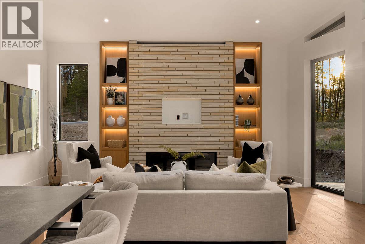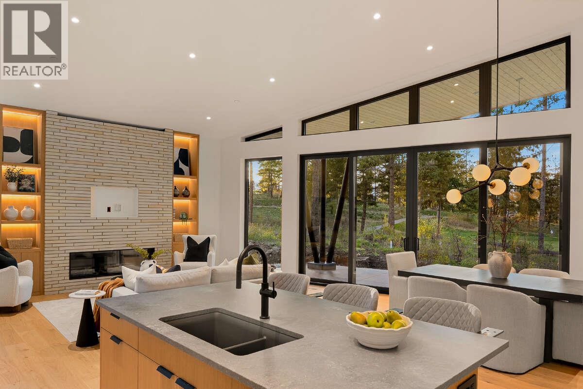 ** For more information, please click Brochure button. ** Experience refined single-level living in this architecturally designed 2,272 sq ft rancher overlooking the 7th green of the Ridge Course in Vale at Ellison Landing. With no stairs & a thoughtfully designed layout, this home offers effortless everyday living and long-term comfort. The vaulted great room features expansive glazing capturing close-range golf course views and a striking custom feature wall with concealed pivot door to the Primary Suite — a rare architectural detail. The entertainer’s kitchen is equipped with quartz countertops, Fisher & Paykel panel-ready appliances, a walk-in butler’s pantry, wine wall, and oversized island. The Primary Suite offers fairway views and a spa-inspired ensuite with heated floors, curbless shower, freestanding tub, and generous walk-in closet. A bright glass-enclosed office provides the perfect work-from-home space. Outdoor living extends to a covered patio, while the oversized garage accommodates two vehicles plus a golf cart. Built to BC Energy Step Code 4 standards and backed by a 2-5-10 New Home Warranty. Move-in ready golf course living — with Ellison Provincial Park trails just steps away. Located within the City of Vernon with full city utilities and landscape maintenance included. Predator Ridge offers resort-style living just 25 minutes to Kelowna International Airport — with amenities including golf, fitness, tennis, pickleball, trails. Property not yet assessed. (id:6769)