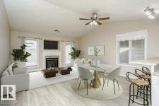 Enjoy carefree living in this beautifully maintained bungalow villa in the quiet community of Southfort Bend—perfect for retirees seeking comfort and convenience. This open-concept home features vaulted ceilings, upgraded vinyl plank flooring, central A/C, and a cozy natural gas fireplace. The bright living and dining area offers space for entertaining, with a garden door leading to a newer maintenance-free deck . The well-designed kitchen includes stainless steel appliances, a breakfast bar, corner pantry, and ample cabinetry. The spacious primary bedroom boasts his & hers closets and a 3-piece ensuite with a large shower. A versatile den/flex room, 4-piece main bath, and main floor laundry add to the functionality. The basement is wired and ready for future development. Condo fees provide access to fantastic amenities including dining, social spaces, fitness room, salon, guest suites, and more—plus beautifully landscaped grounds with walking paths and fountains. Complex located on Public Transit routes. (id:6769)