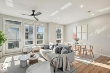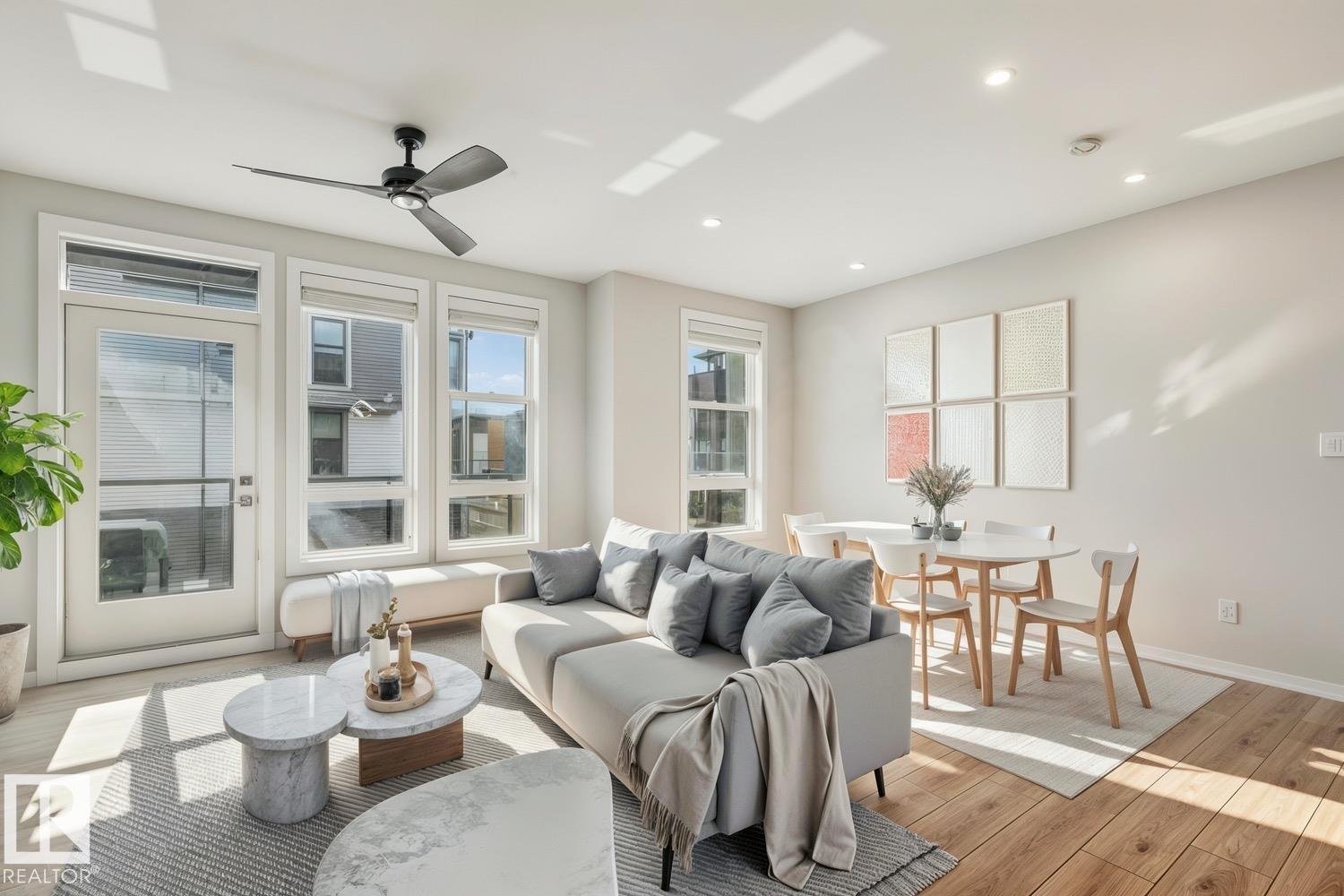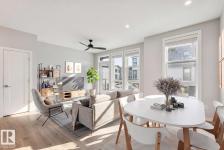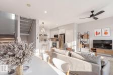 Better than new! Awesome value in this gorgeous townhouse available in the vibrant Pivot Townhomes! This 1158 sqft, 2 bed/2 bath unit is fully upgraded and will surely impress. The main level offers an open floor plan, beautiful kitchen w/quartz counters and s.s. appliances, and access to your outside patio. Open living/dining areas, floor to ceiling windows, and rich laminate flooring throughout. Upstairs offers the primary bedroom w/3-pc ensuite, 2nd bedroom, additional 4-pc bath, and laundry area. Single attached garage, central A/C, and more! Located close to parks, schools, shopping, and other amenities. Hard to beat this value! (id:6769)