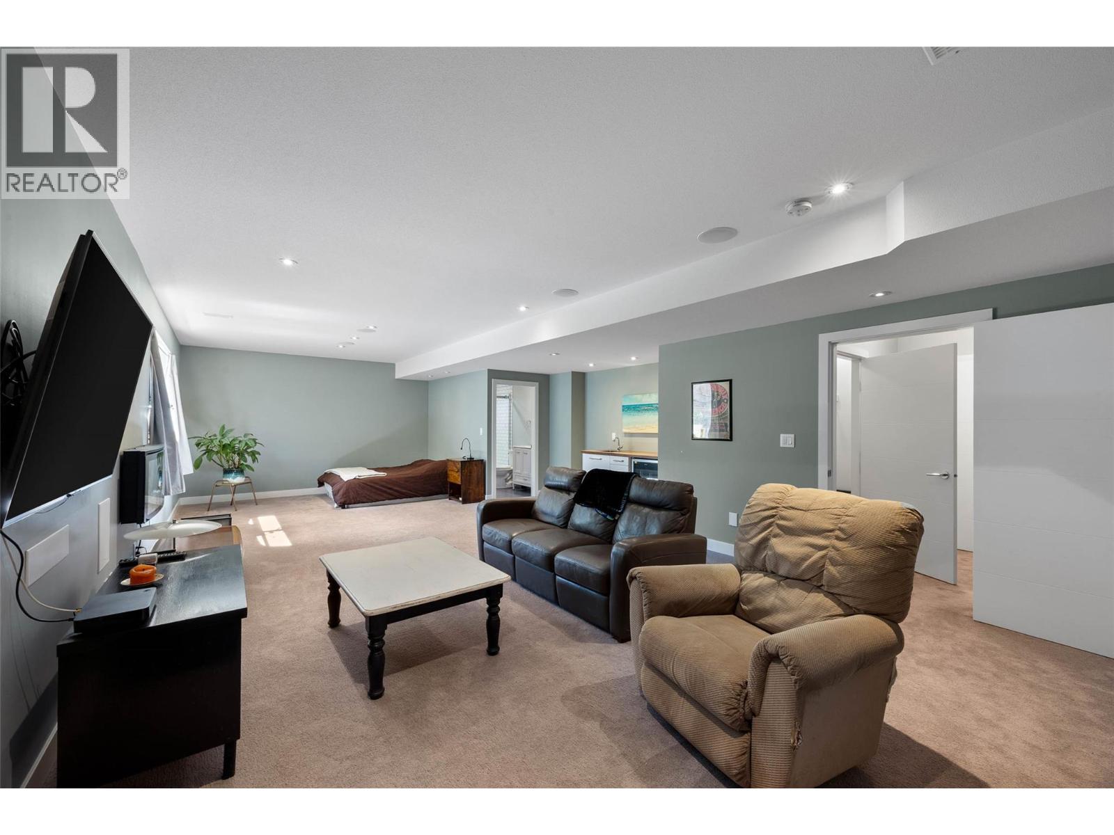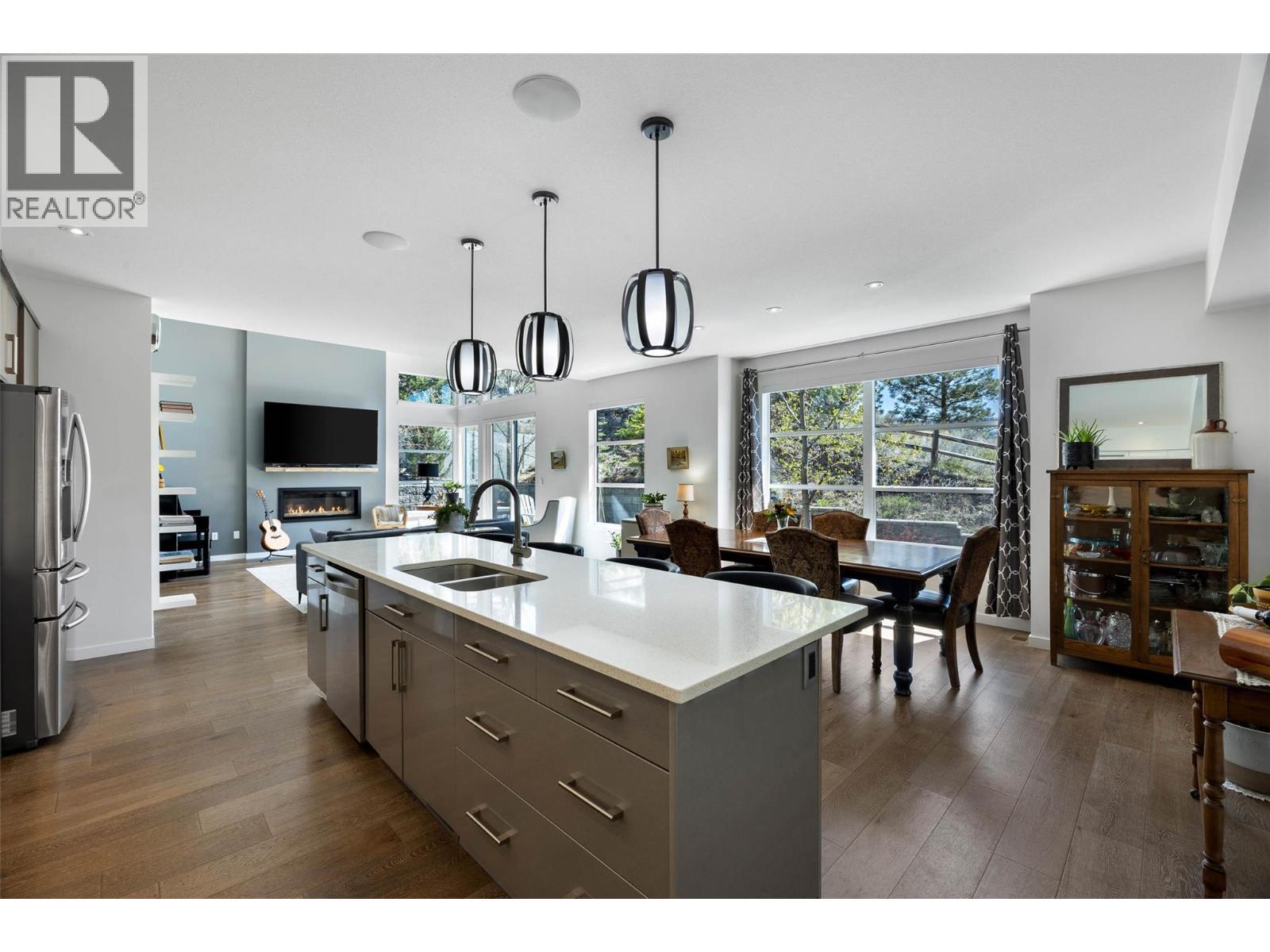 Welcome to elevated living in the sought-after Orabella community in Dufferin—one of Kamloops’ most desirable neighbourhoods, known for its extensive trail network, natural surroundings, and close proximity to shopping, dining, and everyday amenities. This impressive end unit offers over 3,500 sqft of thoughtfully designed living space with exceptional privacy and views. The bright, open concept main floor is filled with natural light and showcases contemporary finishes, including floor-to-ceiling windows in the two-storey living room and seamless flow for both everyday living and entertaining. The stylish kitchen features sleek cabinetry, a large island, and functional design at the heart of the home. This residence offers 2 spacious bedrooms plus an office, along with 3 well-appointed bathrooms. The primary suite provides a comfortable retreat with a beautifully appointed ensuite. A rare and thoughtful feature, the home is designed with potential for a future private elevator with access to all levels, offering added convenience and long-term flexibility. The expansive rooftop patio is equally unique, creating a private outdoor oasis to relax or entertain while taking in sweeping views. The lower level offers incredible versatility with a large rec room featuring a wet bar, gym space, 3-piece bathroom, and a built-in Murphy bed—perfect for accommodating guests. Complete with central A/C and a double car garage, this home blends luxury, lifestyle, and low-maintenance living in a prime location. (id:6769)